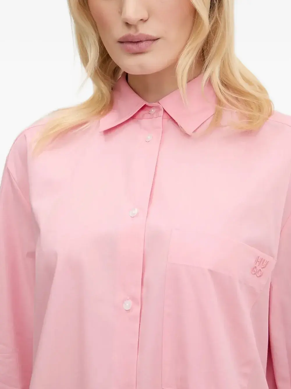 Рубашка с вышитым логотипом HUGO, розовый