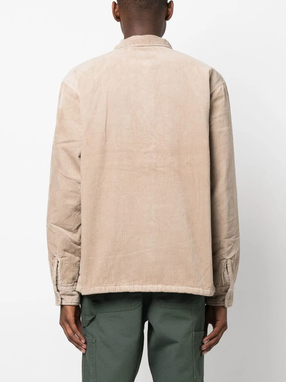 Миндальный, хлопок, нашивка с логотипом на груди, два нагрудных кармана с клапанами, классический воротник, застежка на пуговицах спереди, длинные рукава, манжеты на пуговицах и прямой подол.