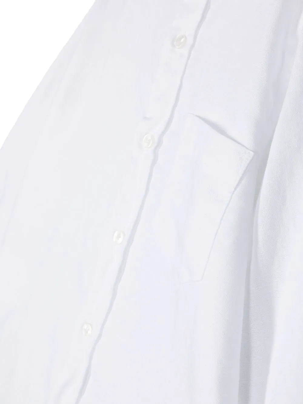 Подробнее о товаре: Белый, лен, смесовый хлопок, без воротника, застежка на пуговицах спереди, нагрудный накладной карман, длинные рукава, манжеты на пуговицах и закругленный подол. Этот товар как минимум на 50% состоит из материалов, которые признаны более безопасными для окружающей среды, и/или произведены с использованием методов, которые помогают сократить потребление воды и химических веществ. Узнать больше о том, какие товары получают отметку «Ответственный выбор», можно из материала «Как мы оцениваем экологичность и этичность».