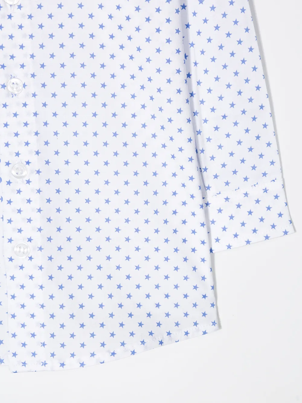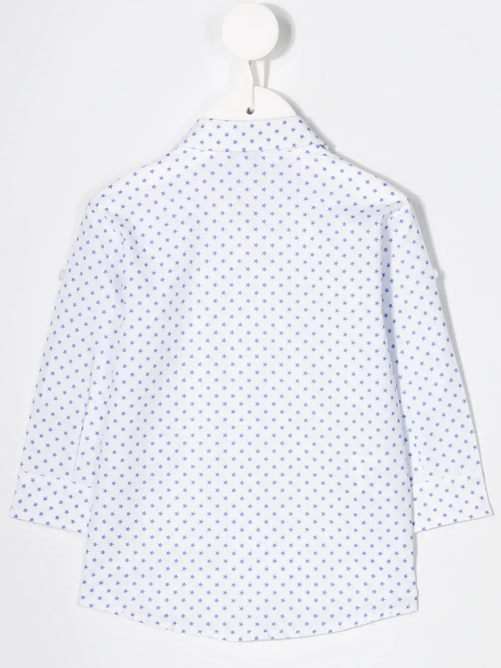 Рубашка с принтом от Aletta. Классический воротник, длинные рукава, застежка на пуговицы, свободный крой и закругленный подол.