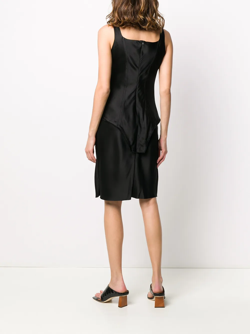 Юбка со вставками, квадратный вырез, застежка на молнии сзади и без рукавов. Цвет: черный.