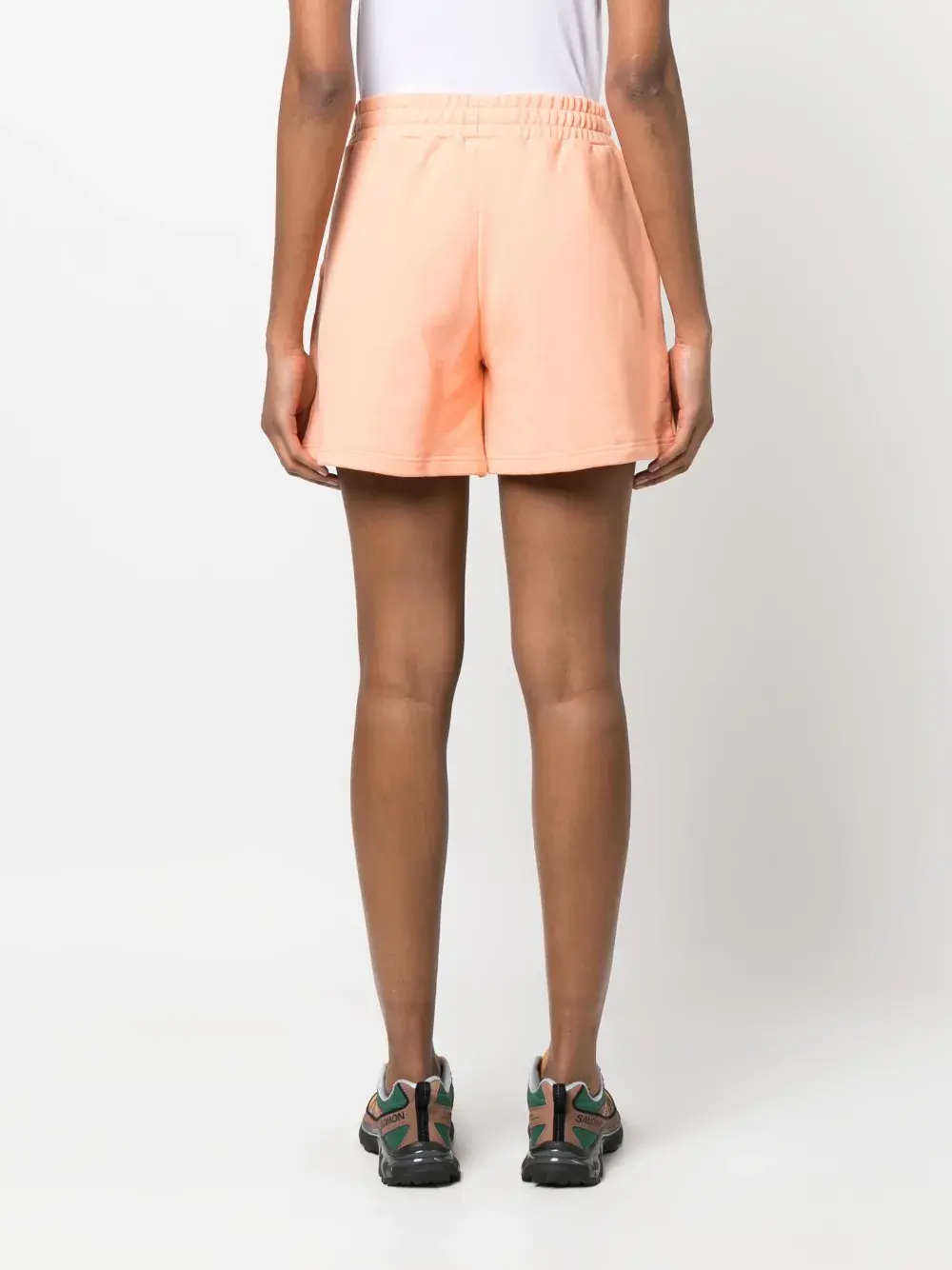 Светло-оранжевый, хлопок, вышитый логотип спереди, эластичный пояс, два передних кармана с клапанами и длина до бедер.