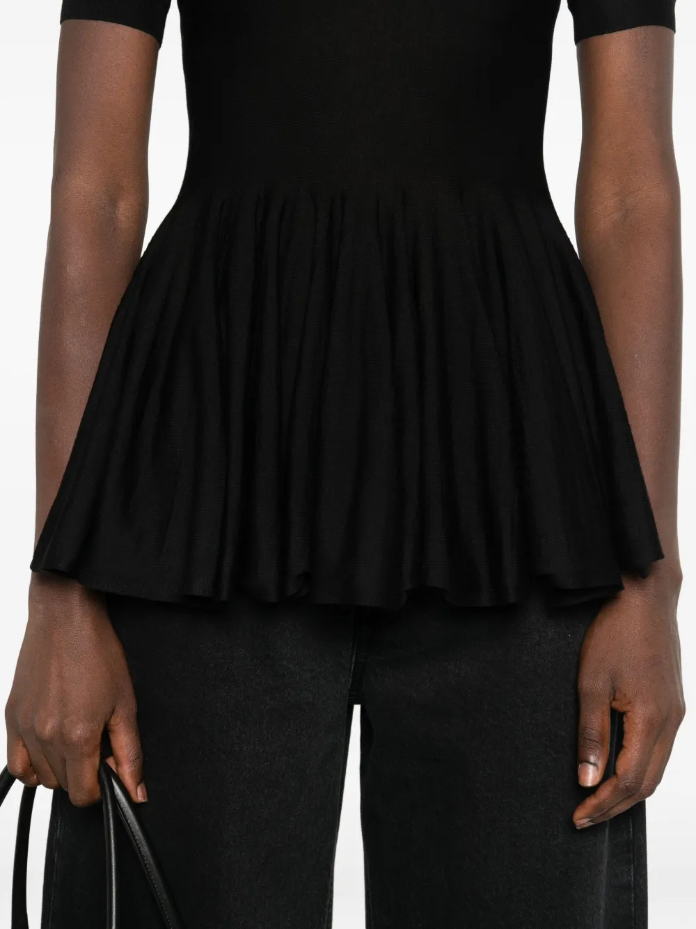 Блузка с короткими рукавами и баской Alaïa, черный 152 553₽