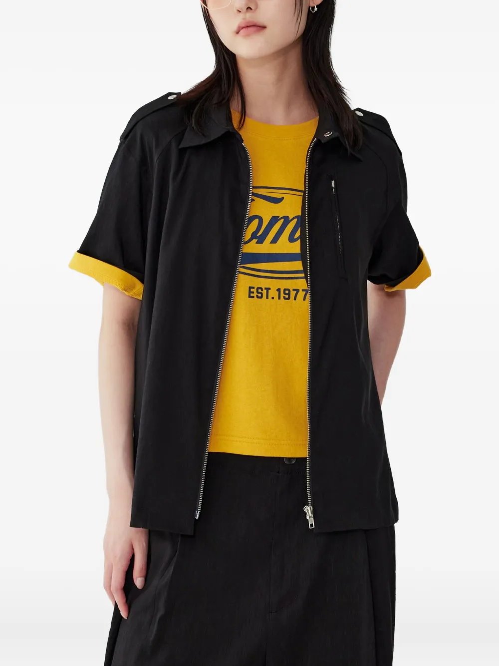 Рубашка на молнии с короткими рукавами STUDIO TOMBOY, черный