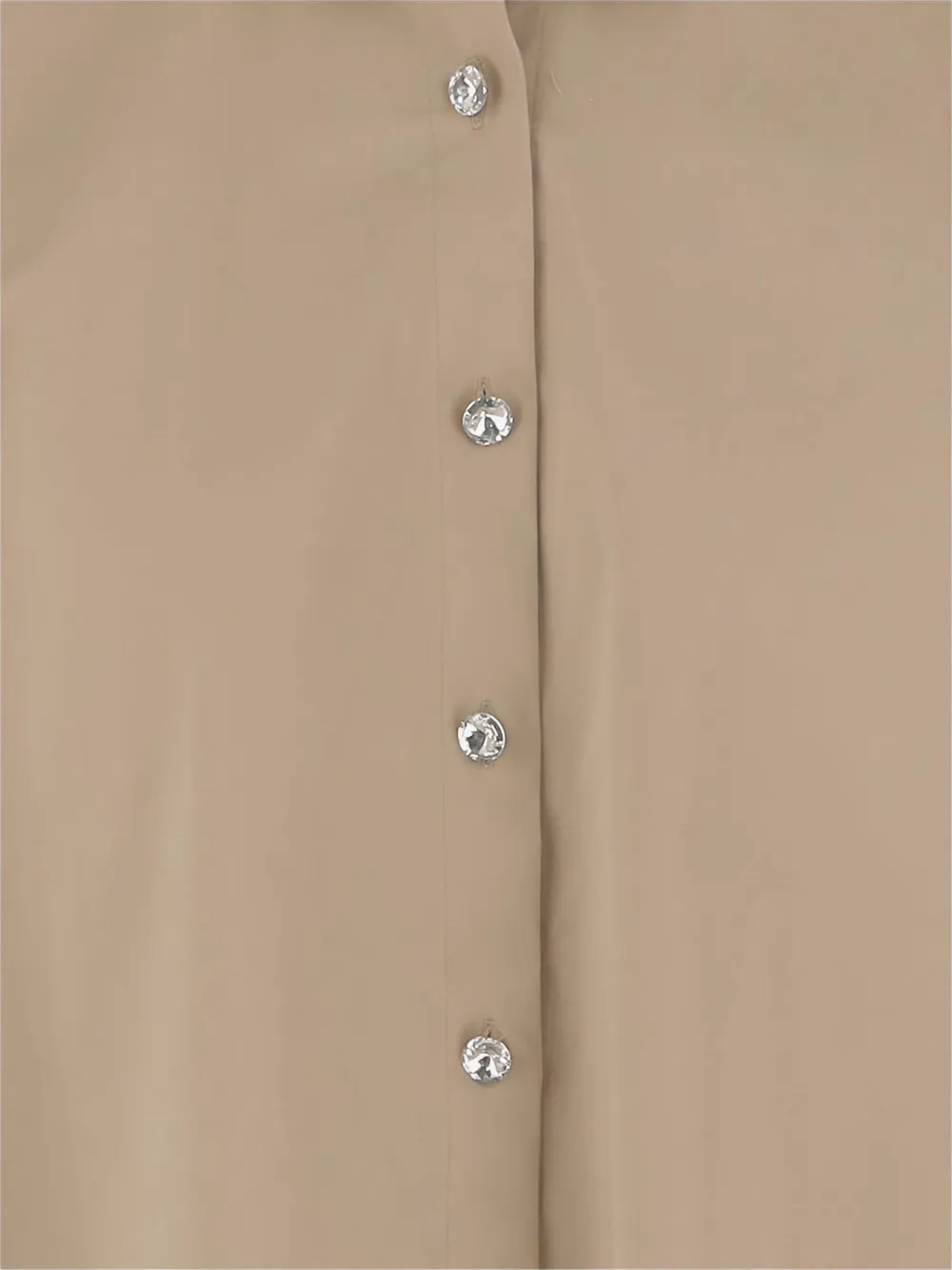Бежевый, застежка на пуговицы спереди, классический воротник, спущенное плечо, прямой подол.