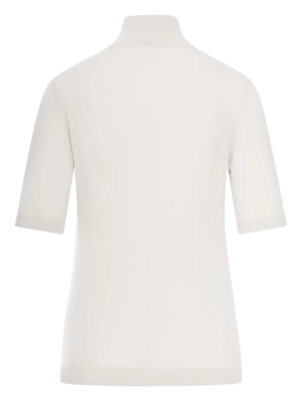 Белая шерстяная водолазка с короткими рукавами и ребристыми отделками.