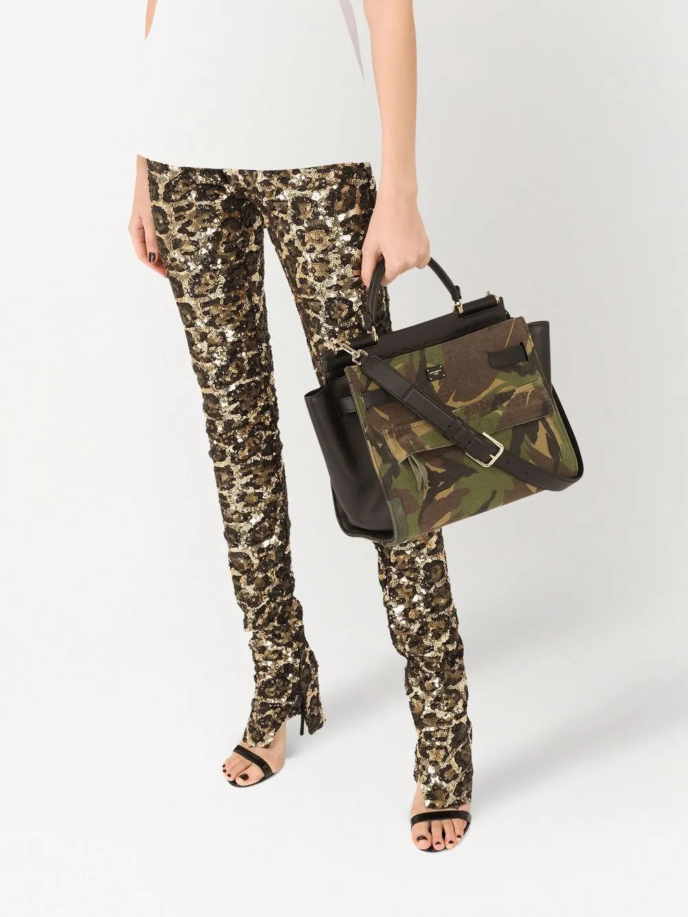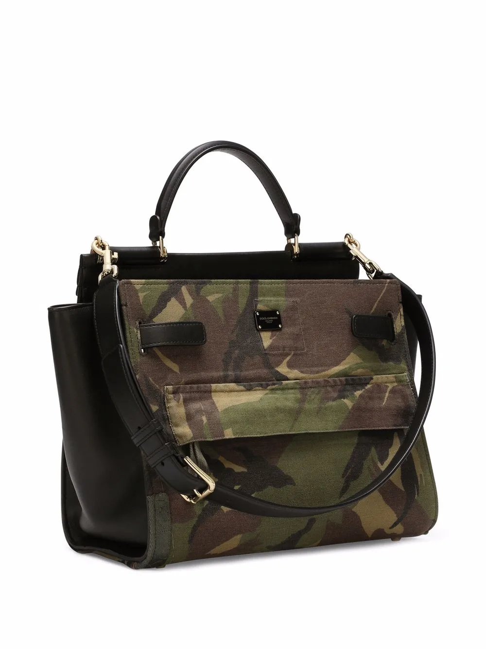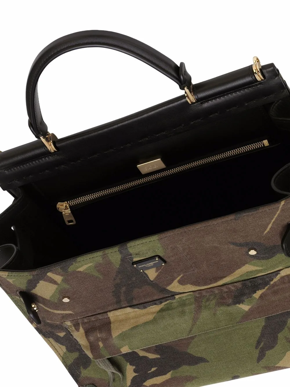 Металлический логотип, камуфляжный принт, передний карман с клапаном, ручка с плоским верхом, съемный регулируемый ремень на плечо, основное отделение и внутренний карман на молнии.