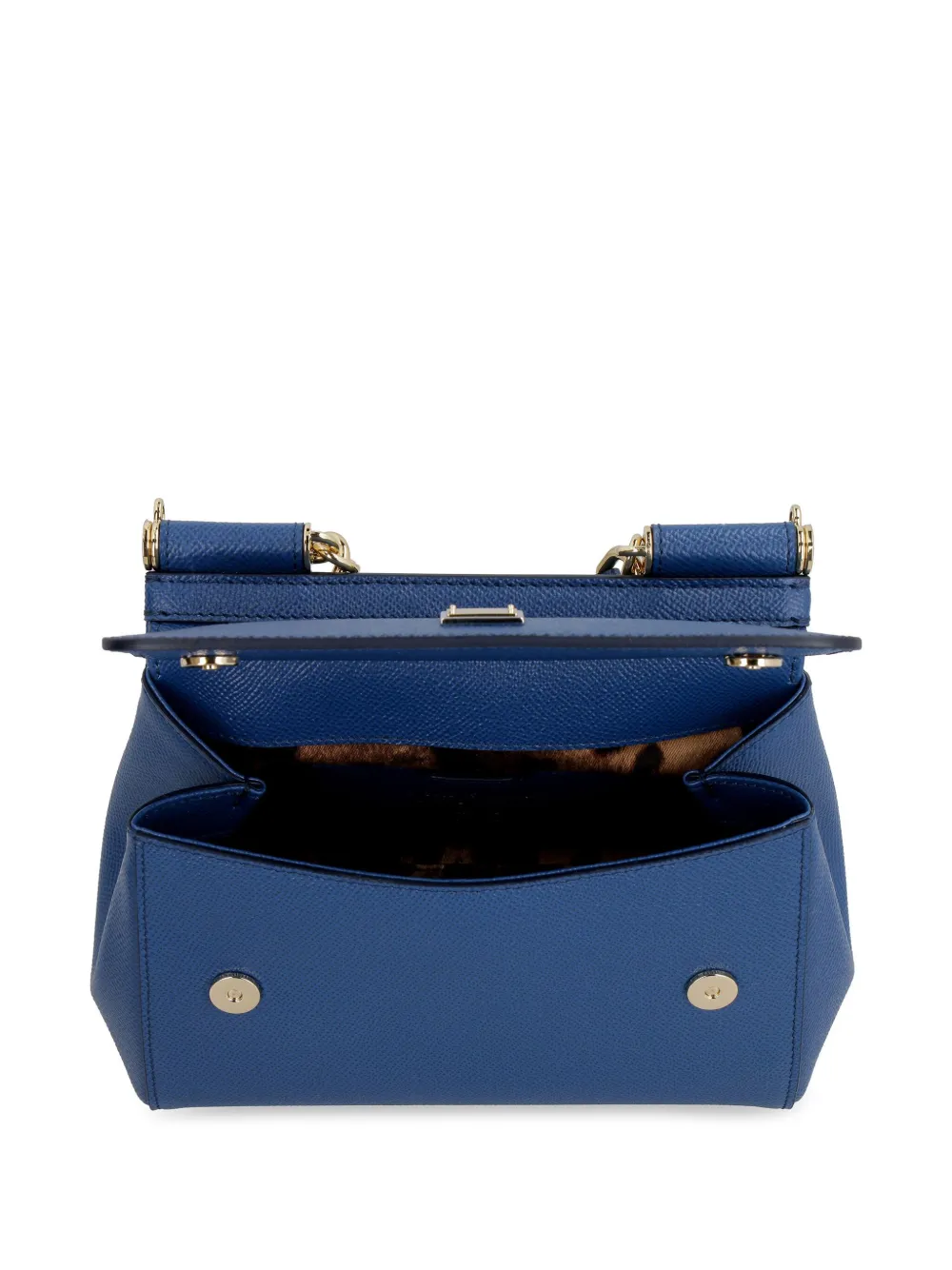 Small Sicily shoulder bag от Dolce & Gabbana (Дольче энд Габбана). Фактурная кожаная деталь, верхняя ручка, съемный регулируемый ремень на плечо, золотистая фурнитура, пряжка с логотипом спереди и леопардовая подкладка.