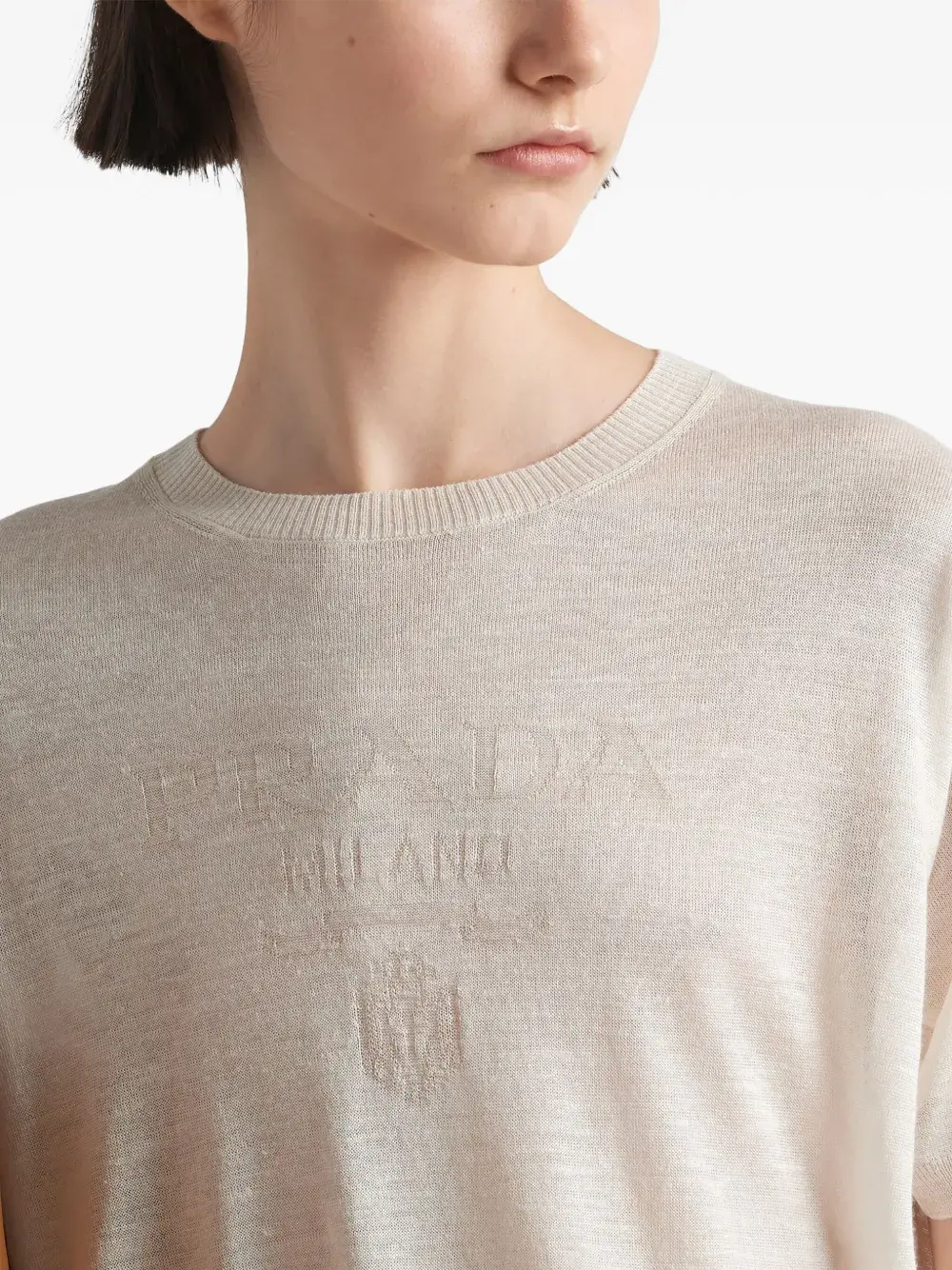 Шелковый джемпер с логотипом Prada, нейтральный 152 369₽