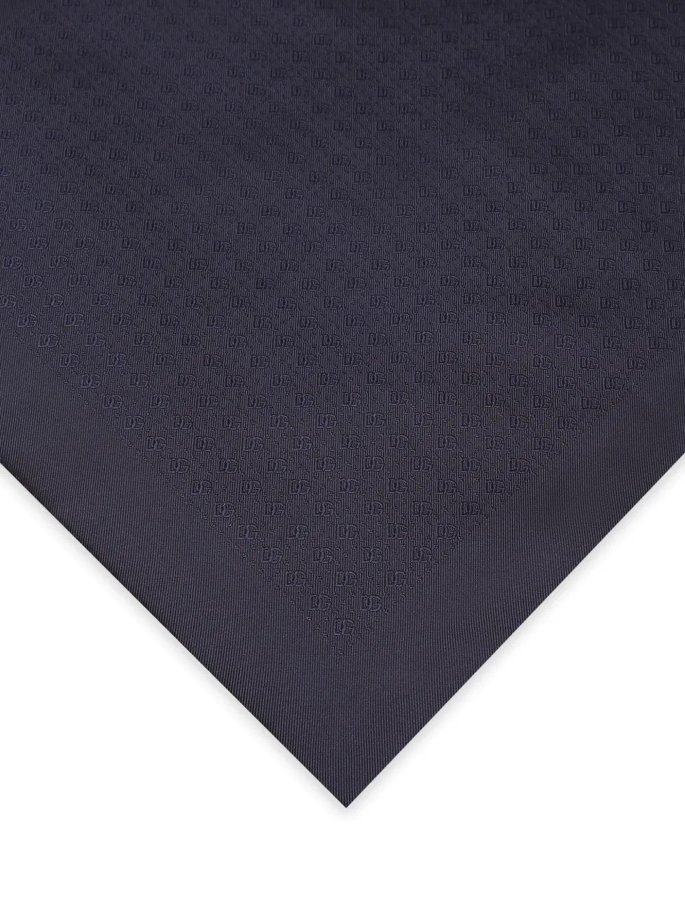 Темно-синий, шелк, жаккардовый логотип, обработанные края и квадратная форма.