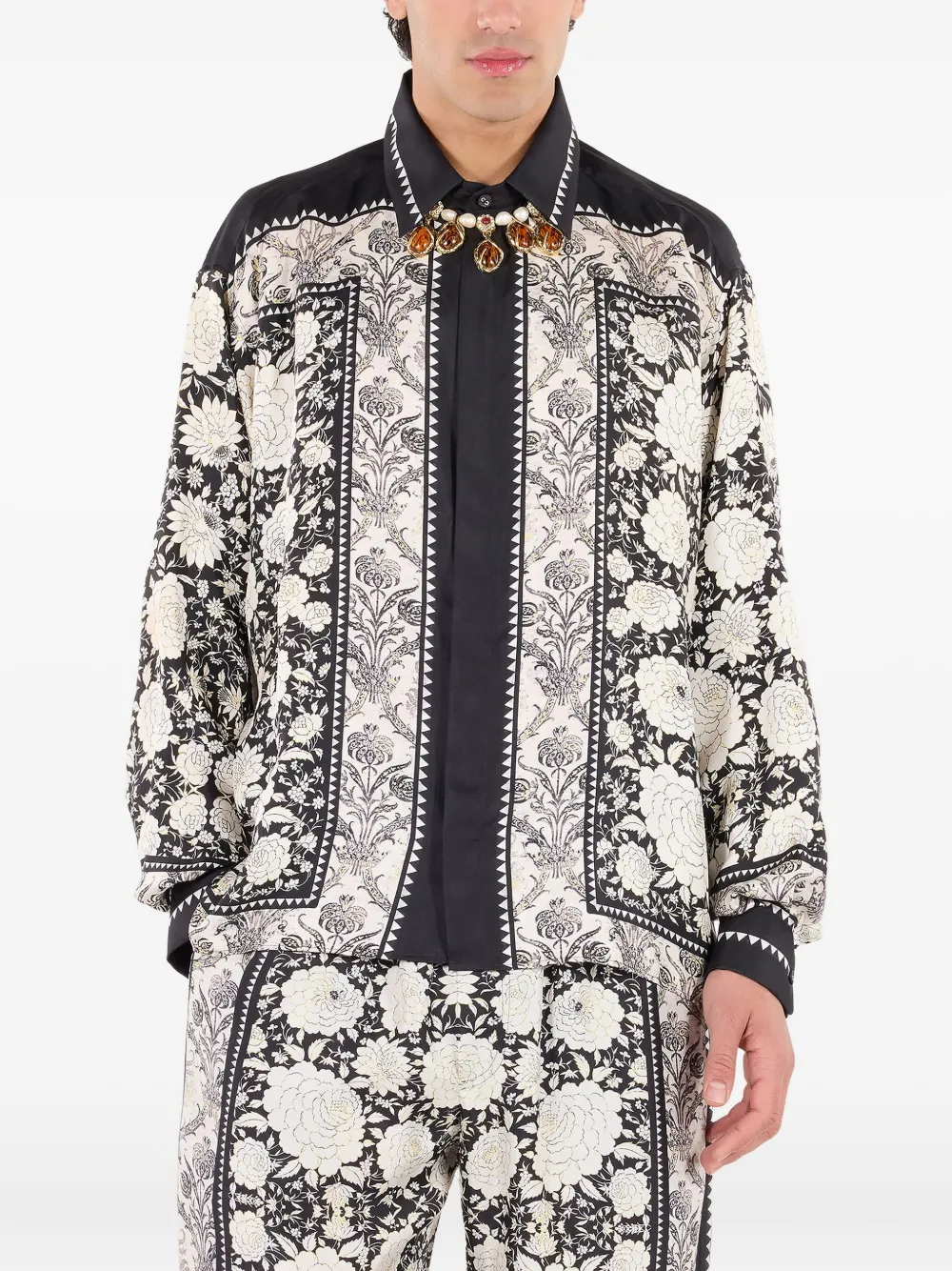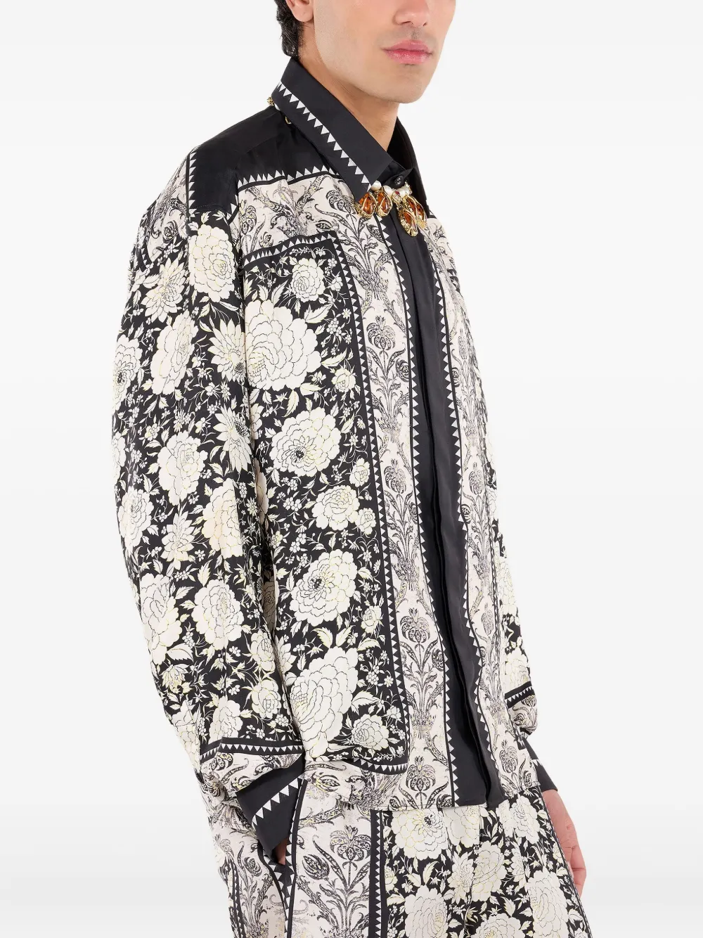 Шелковая рубашка с цветочным принтом Roberto Cavalli, белый