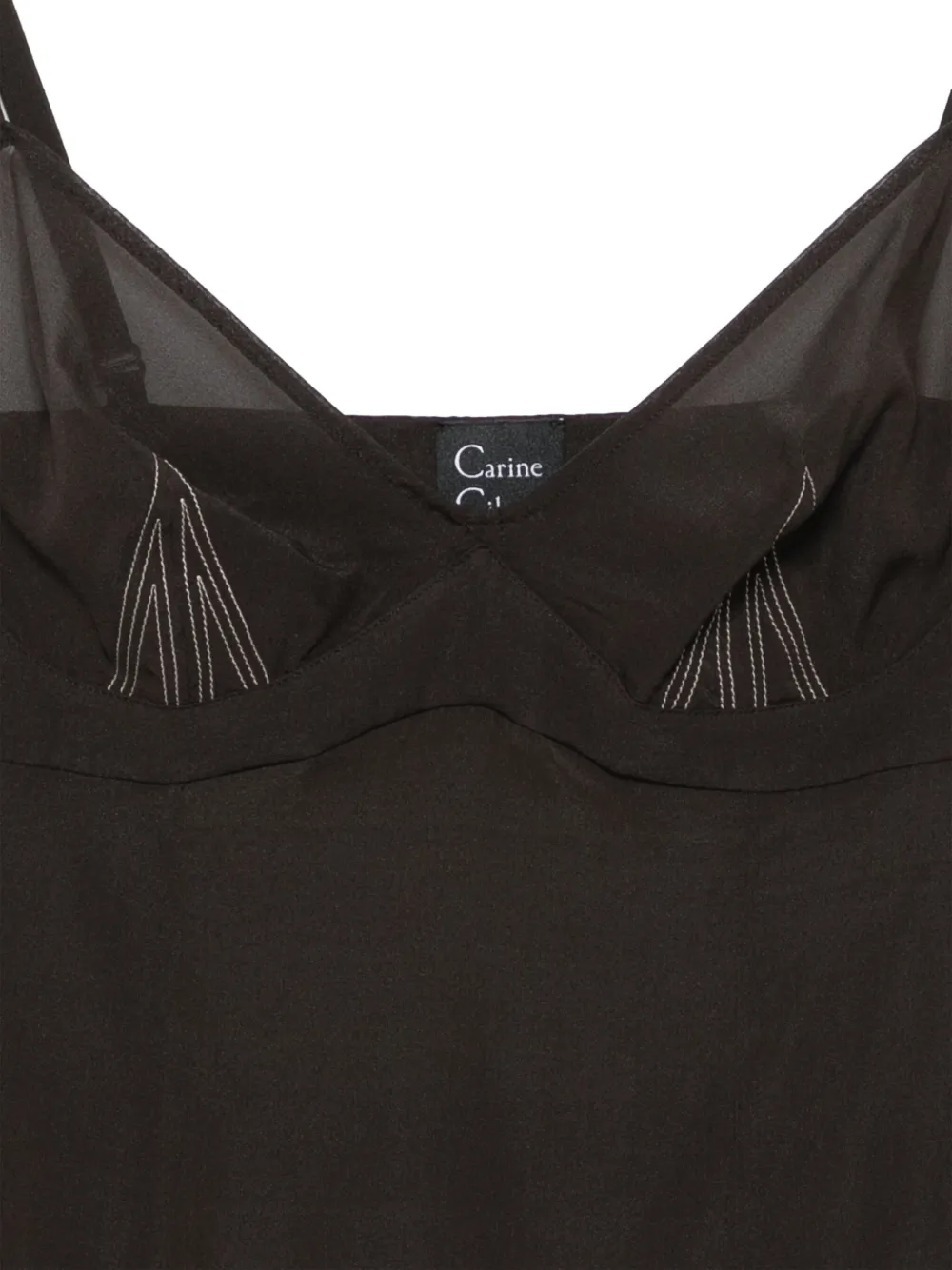 Шелковый топ на бретелях Carine Gilson, коричневый