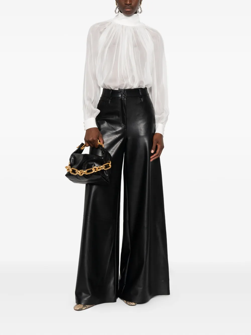 Шелковый топ с высоким воротником Elisabetta Franchi, белый