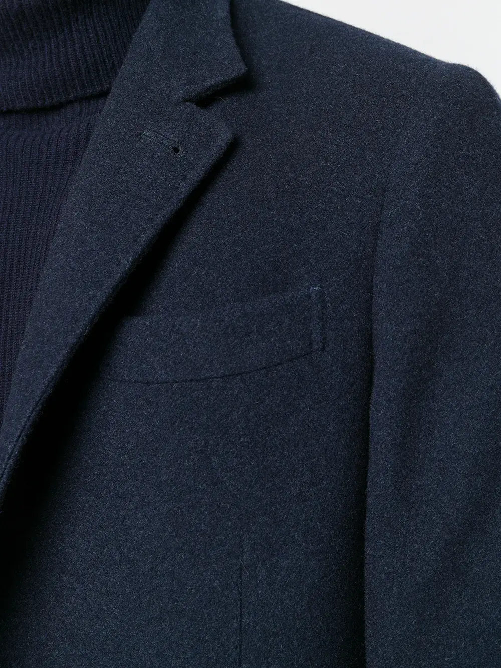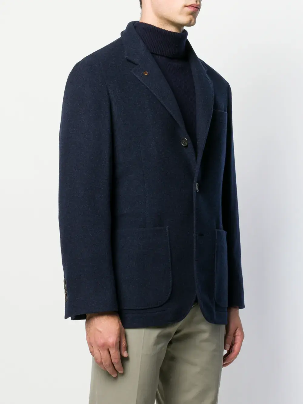 Однобортный блейзер от Brunello Cucinelli (Брунелло Кучинелли). Зазубренные лацканы, застежка на пуговицах спереди, нагрудный карман, длинные рукава, манжеты на пуговицах, передние карманы и разрезы по бокам.