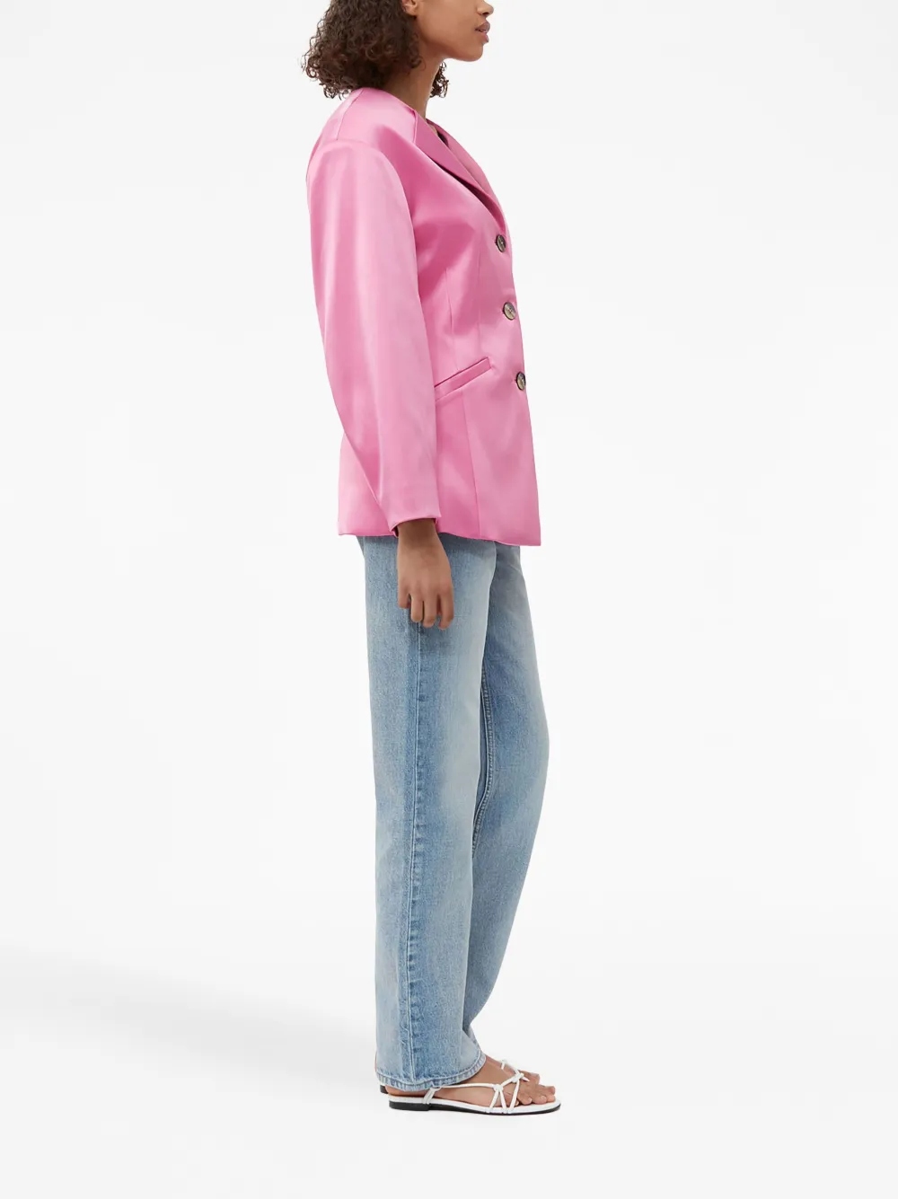 Подробнее о товаре: Розовый, смесовый переработанный полиэстер, зазубренные лацканы, застежка на пуговицах спереди, приталенный силуэт, длинные рукава, прорезной карман на груди и два прорезных кармана спереди. Этот товар как минимум на 50% состоит из переработанных или повторно использованных материалов. Узнать больше о том, какие товары получают отметку «Ответственный выбор», можно из материала «Как мы оцениваем экологичность и этичность».