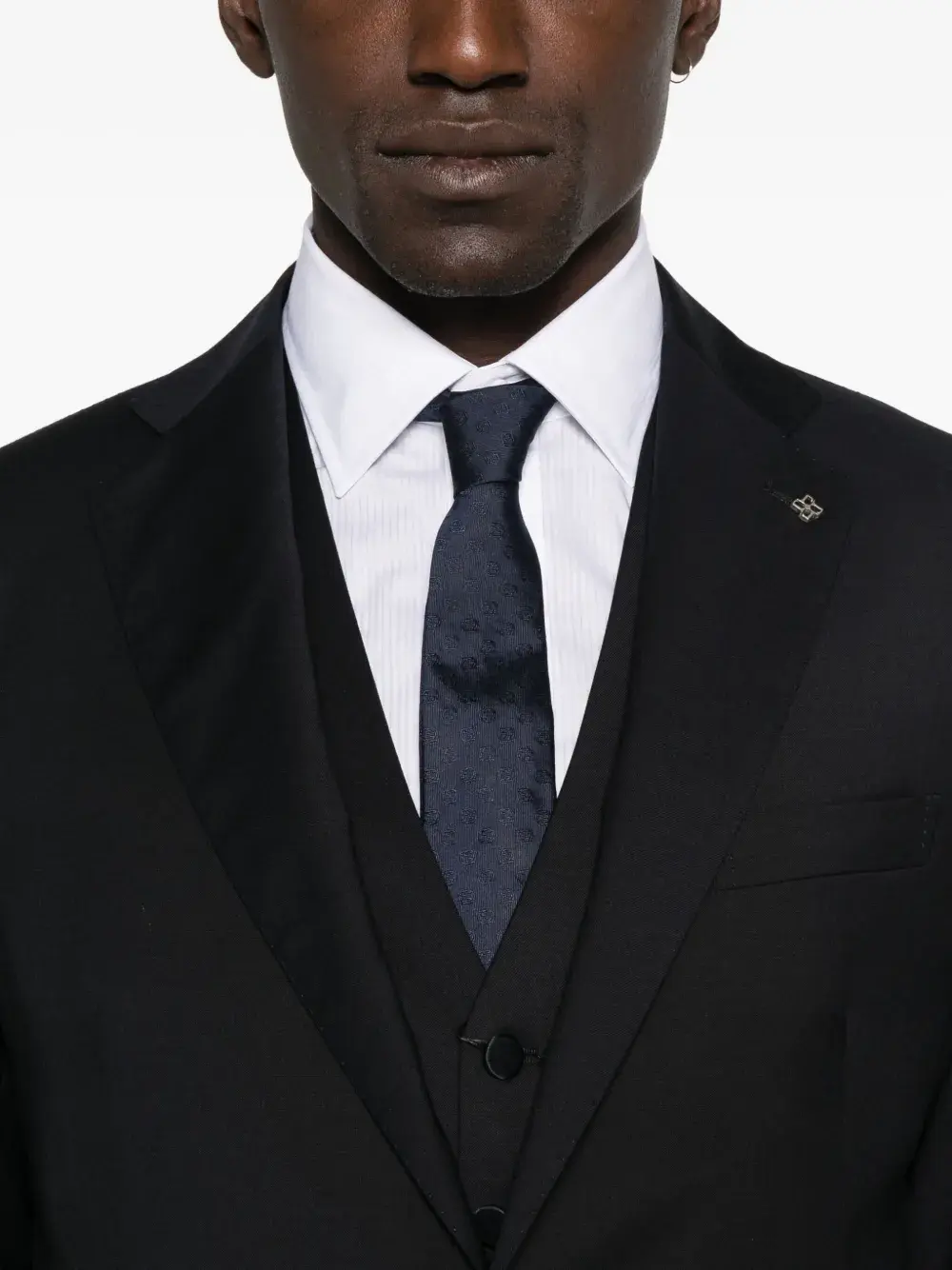 Синяя застежка на пуговицы, заостренный лацкан