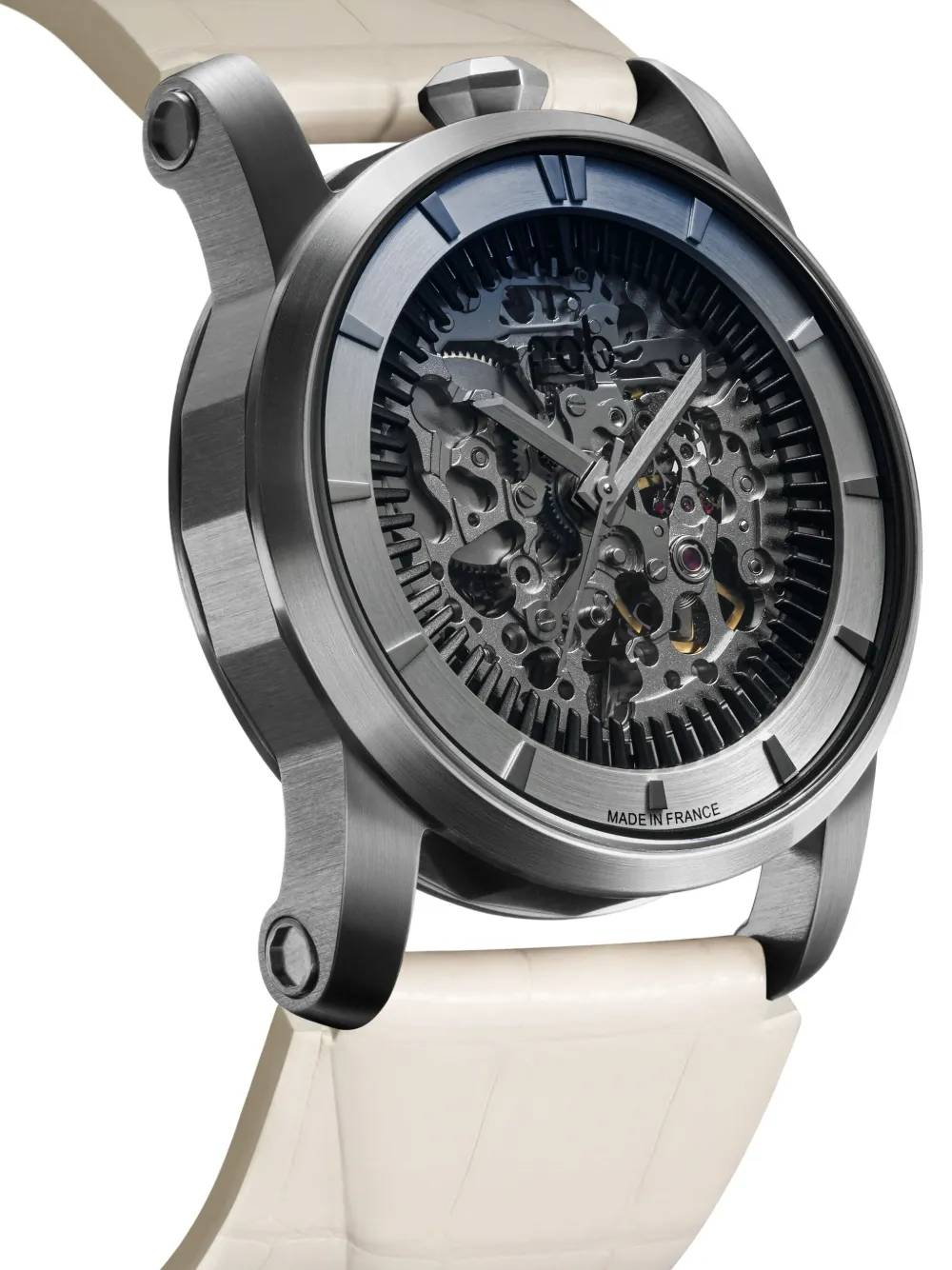 Часы skeleton leather 41mm Fob Paris, серебряный