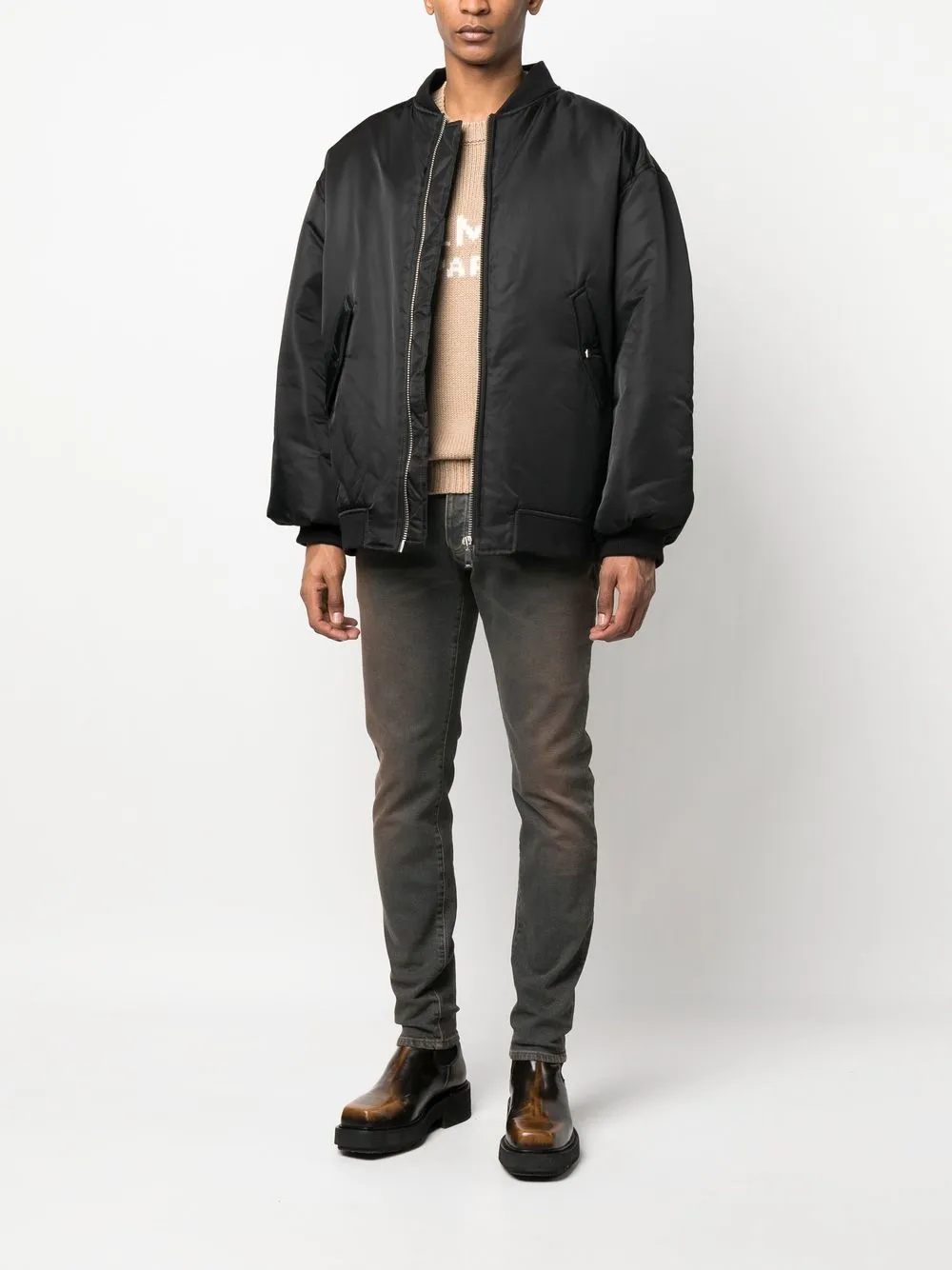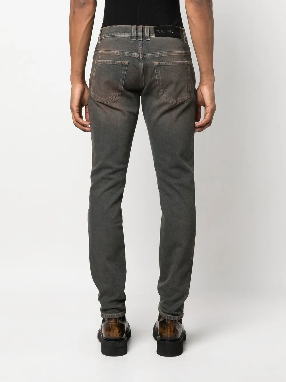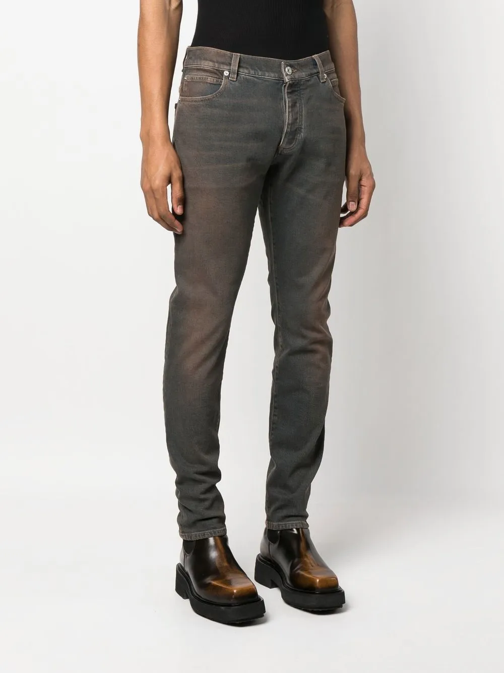 Узкие джинсы с эффектом потертости BALMAIN, коричневый