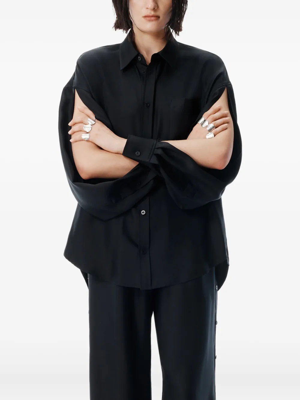 Рубашка с прорезными рукавами Alexander Wang, черный