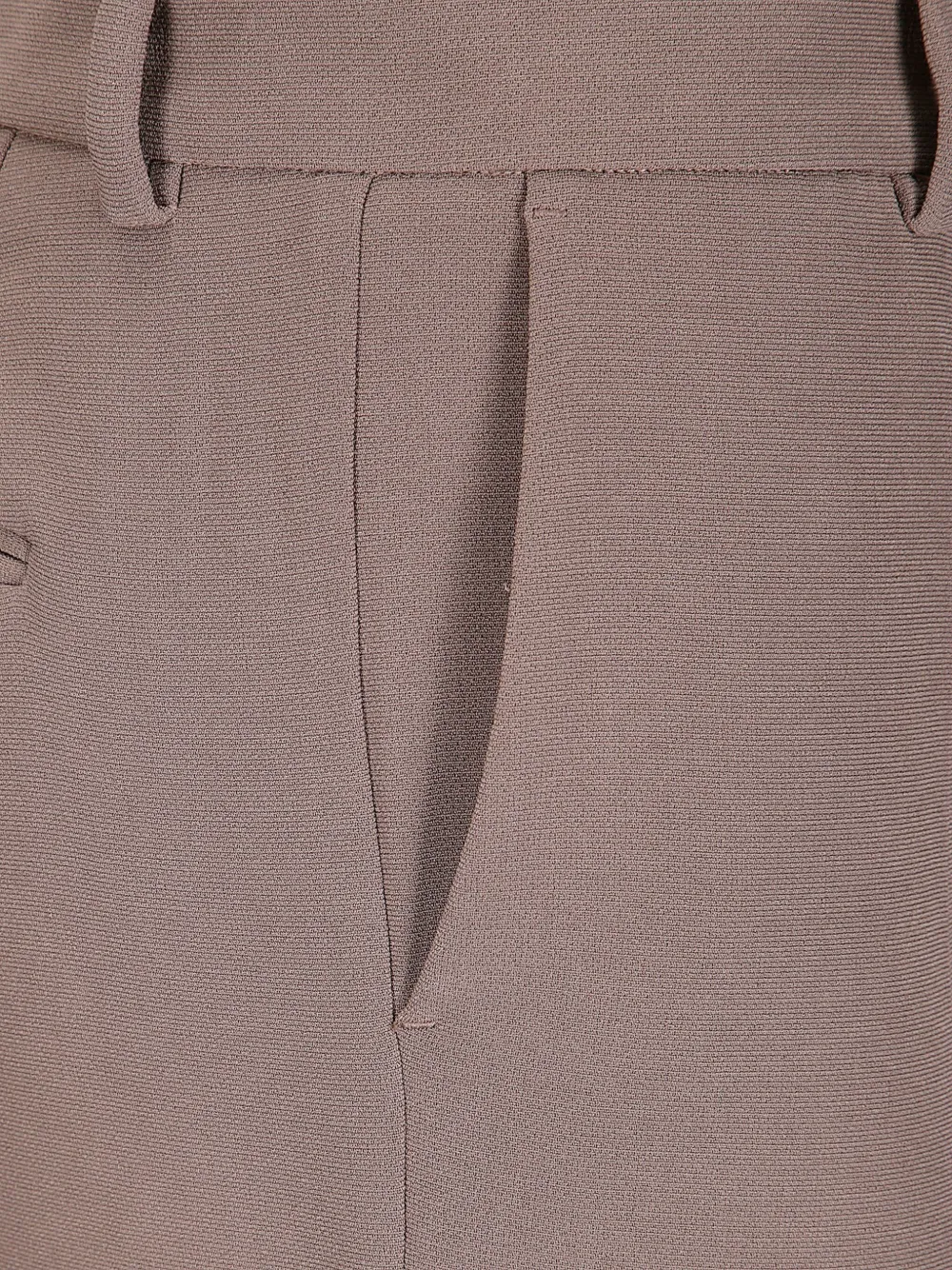 Коричневые прорезные карманы, застежка на крючок, шлевки для ремня, прорезной карман сзади