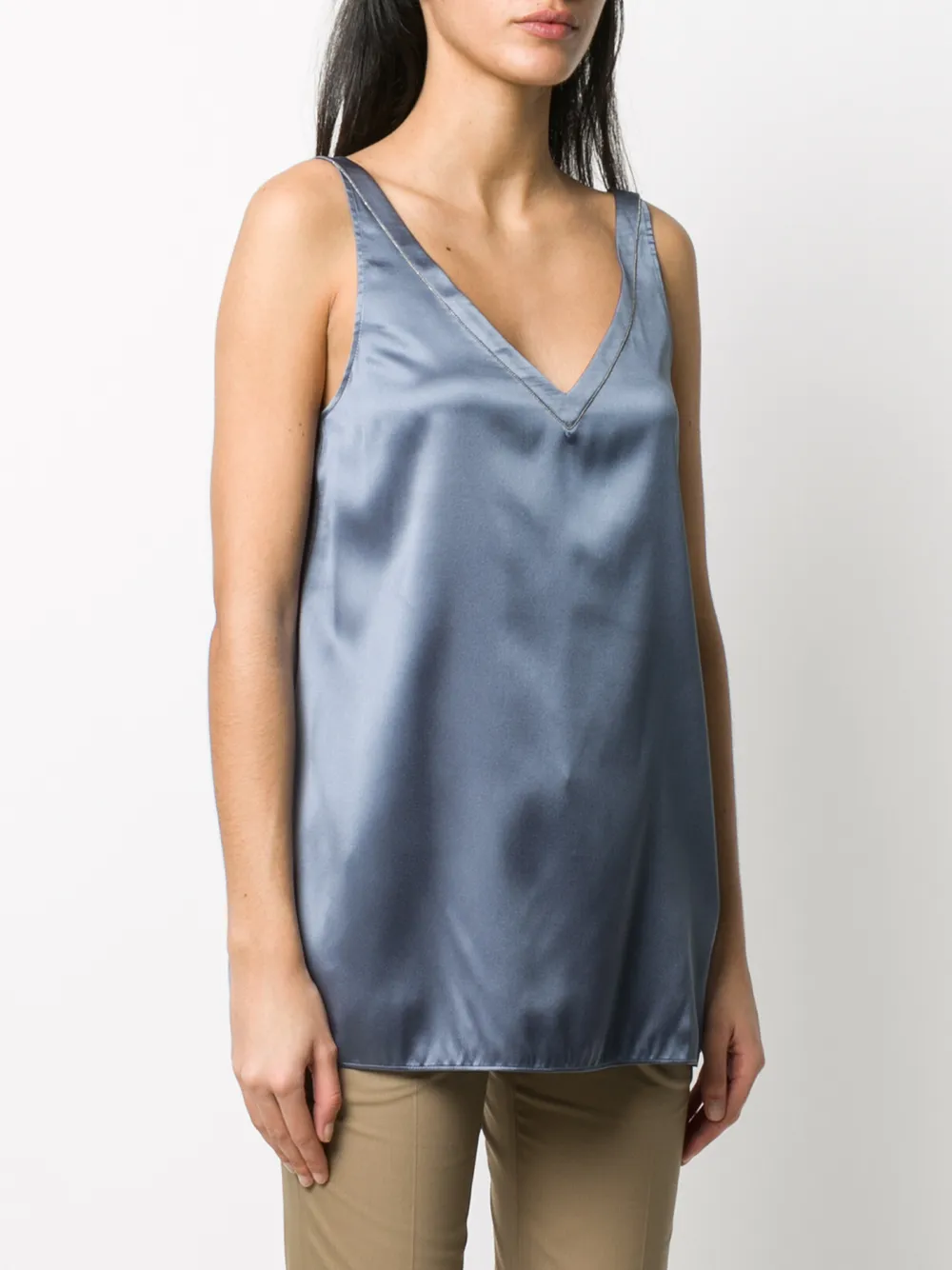 Блузка без рукавов с эффектом металлик Brunello Cucinelli, синий
