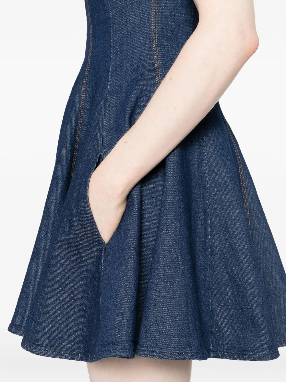 Расклешенная юбка без рукавов из смесового хлопка темно-синего цвета