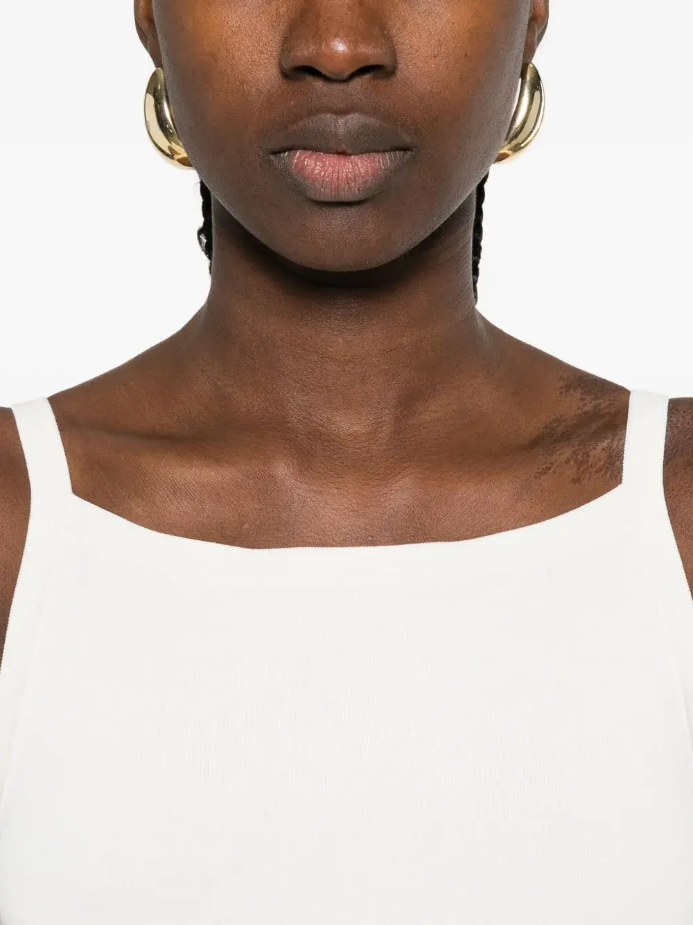 Платье цвета слоновой кости с квадратным вырезом, без рукавов, прямым подолом