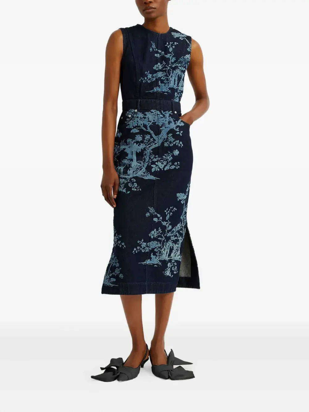 Платье без рукавов с принтом ERDEM, синий 70 063₽