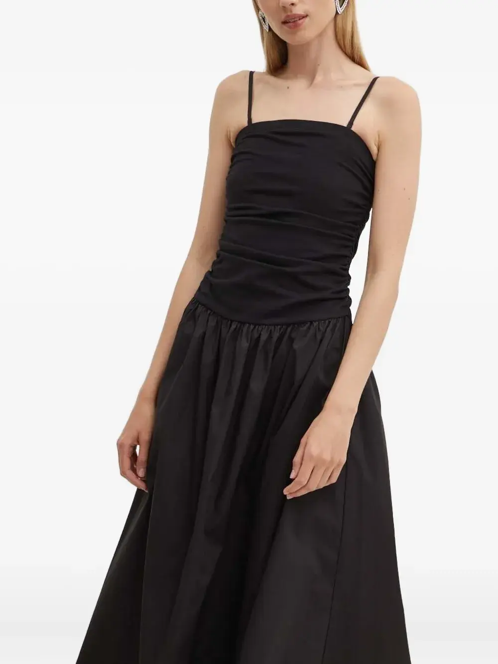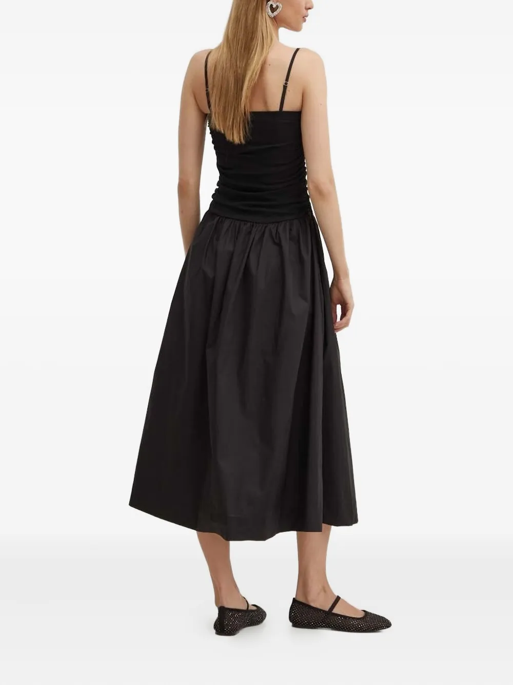 Платье миди без рукавов со сборками NEVER FULLY DRESSED, черный