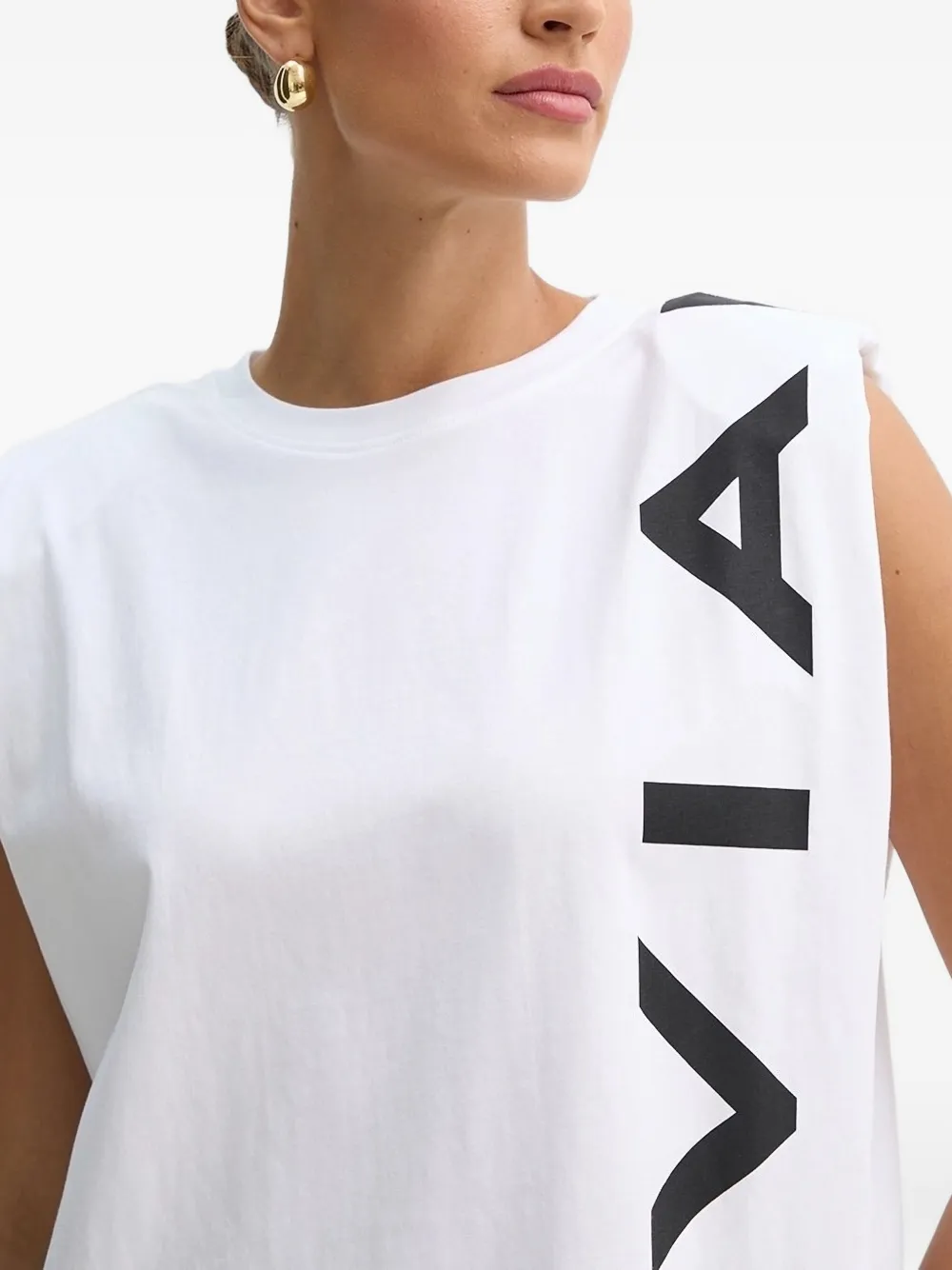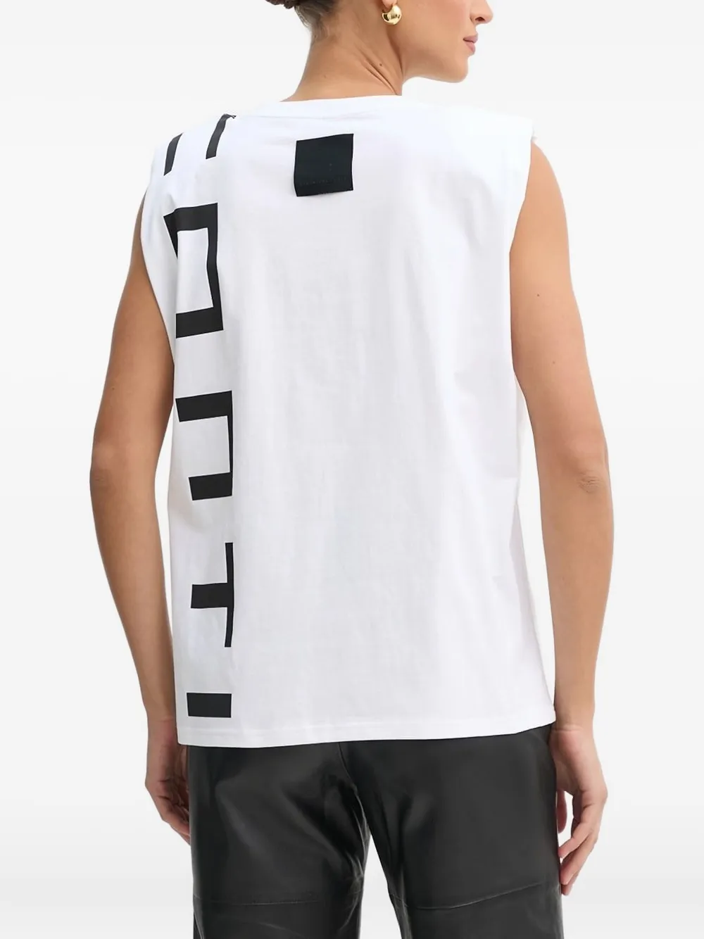 Белый хлопковый топ с логотипом, без рукавов, с круглым вырезом и прямым подолом