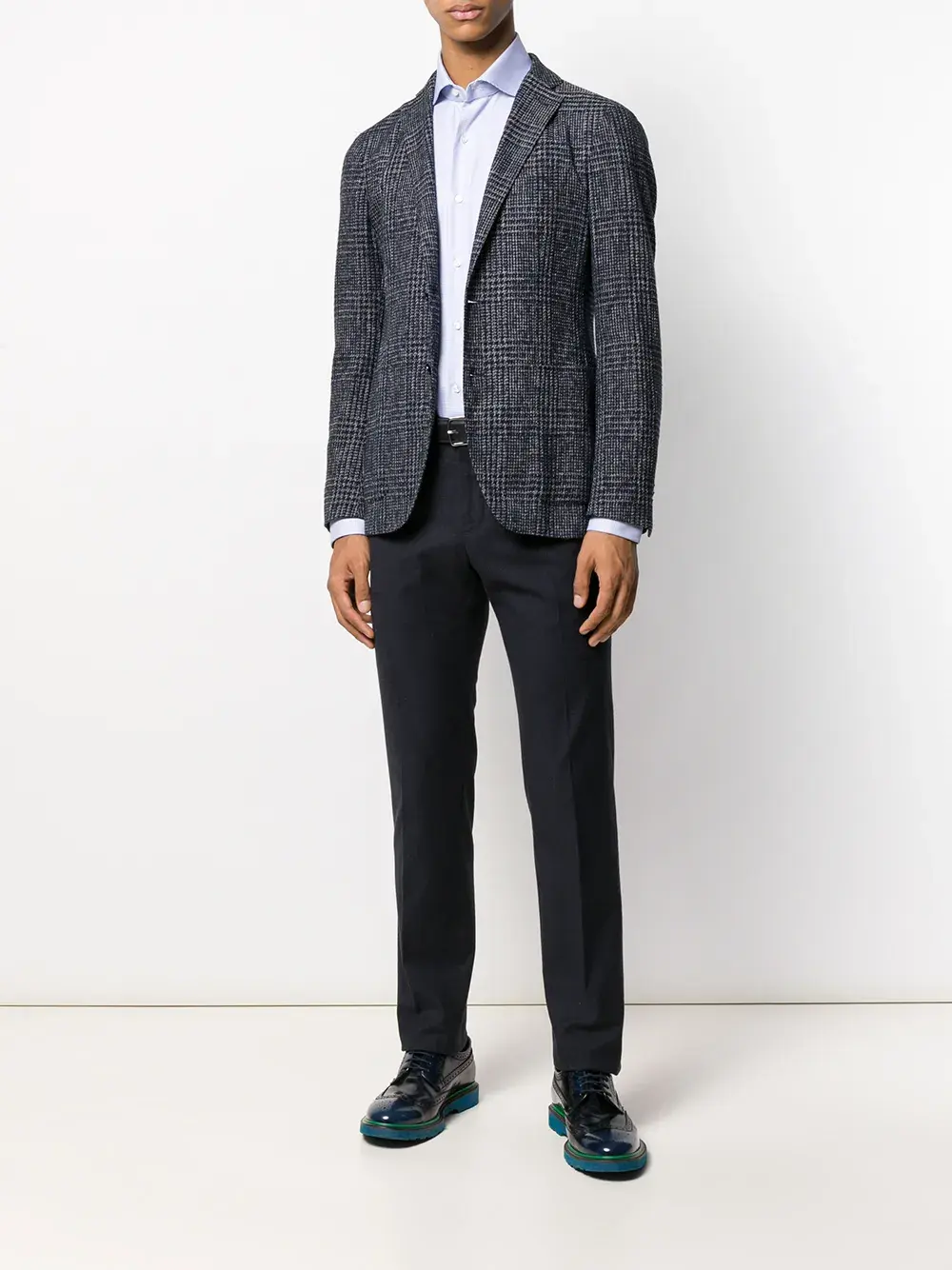 Брюки строгого кроя от Incotex. Пояс с петлями для ремня, потайная застежка спереди, узор в клетку, прорезные карманы по бокам, задние карманы с листочкой и стандартная длина. Цвет: синий.