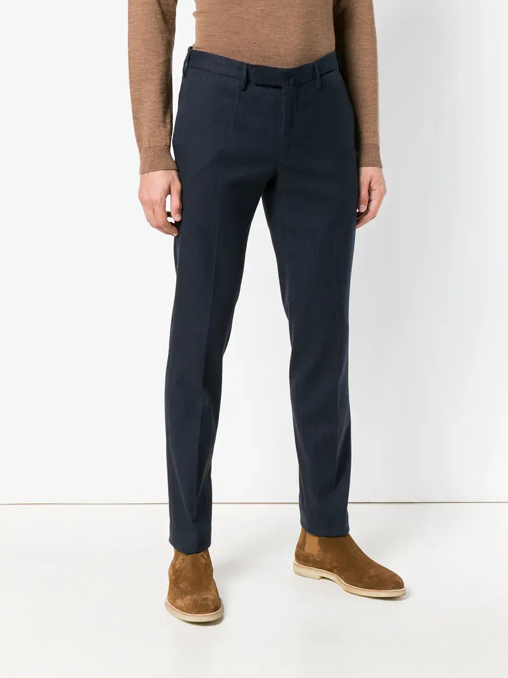Брюки кроя слим с узором от Incotex. Средняя посадка, пояс с петлями для ремня, потайная застежка спереди, боковые карманы, задние карманы с листочкой и стандартная длина.