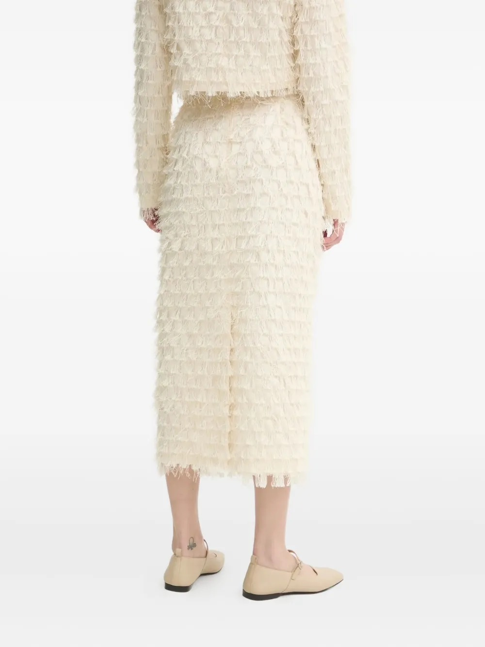 Бежевая бахрома, длина миди, прямой подол