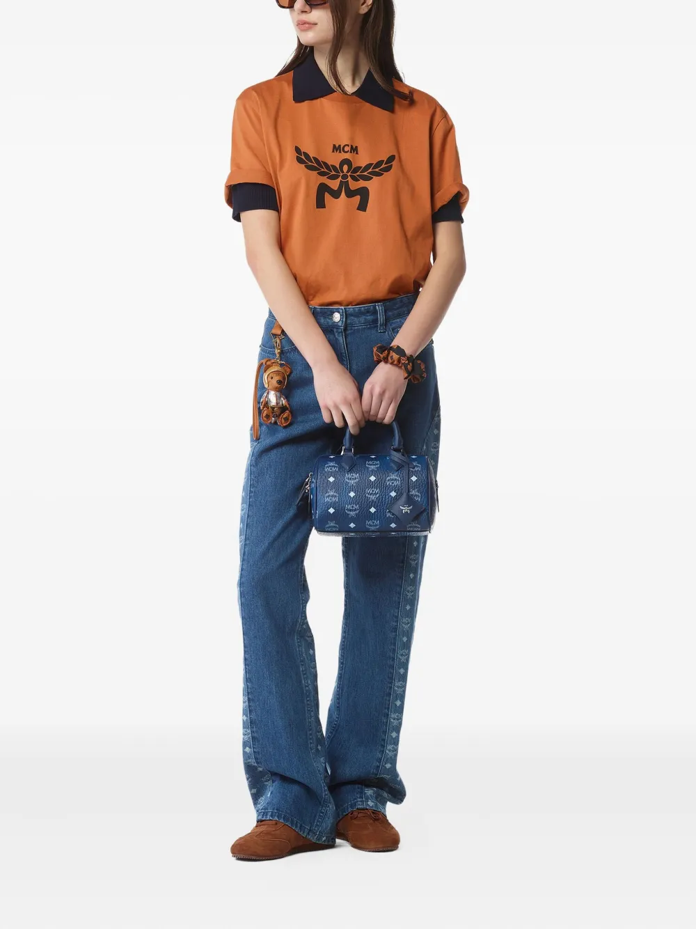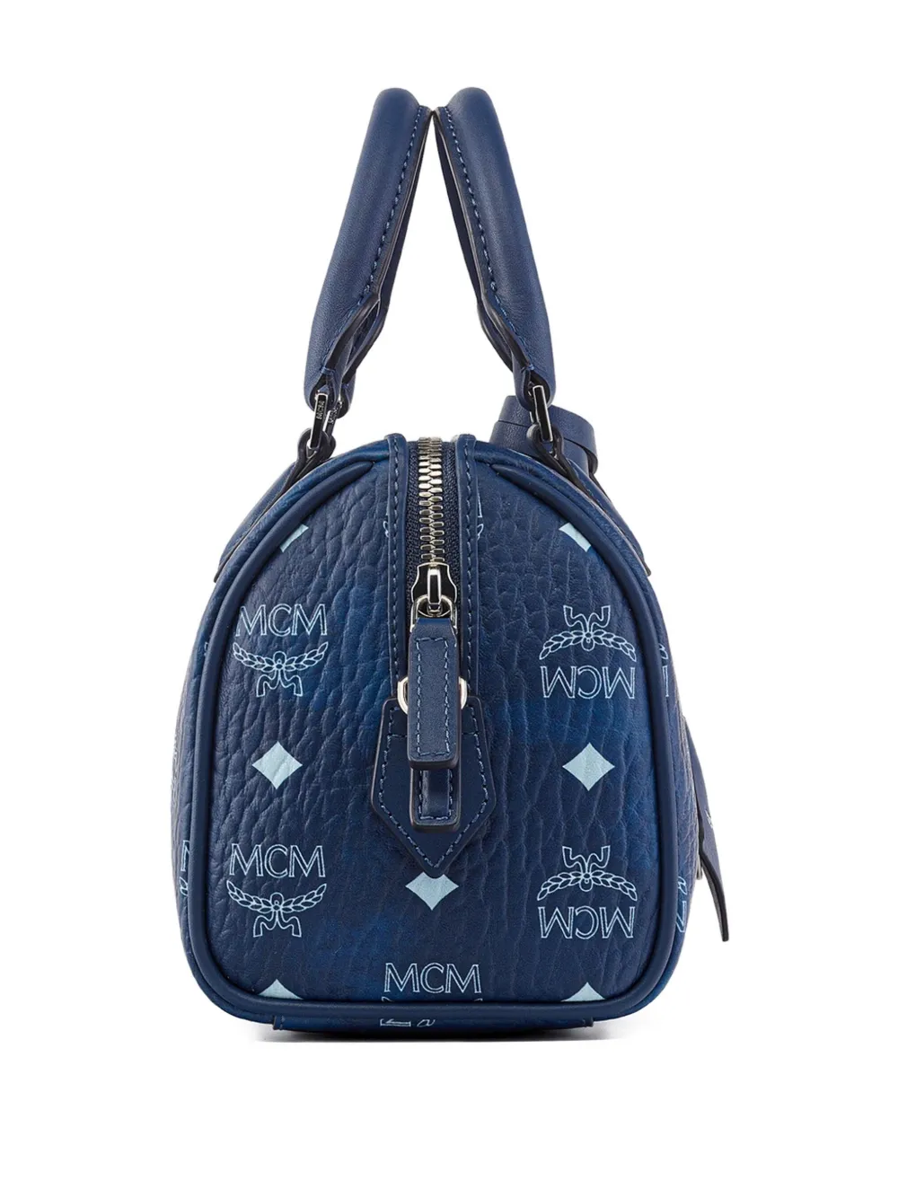 Маленькая сумка-тоут Ella Boston Visetos с монограммой MCM, синий 103 736₽