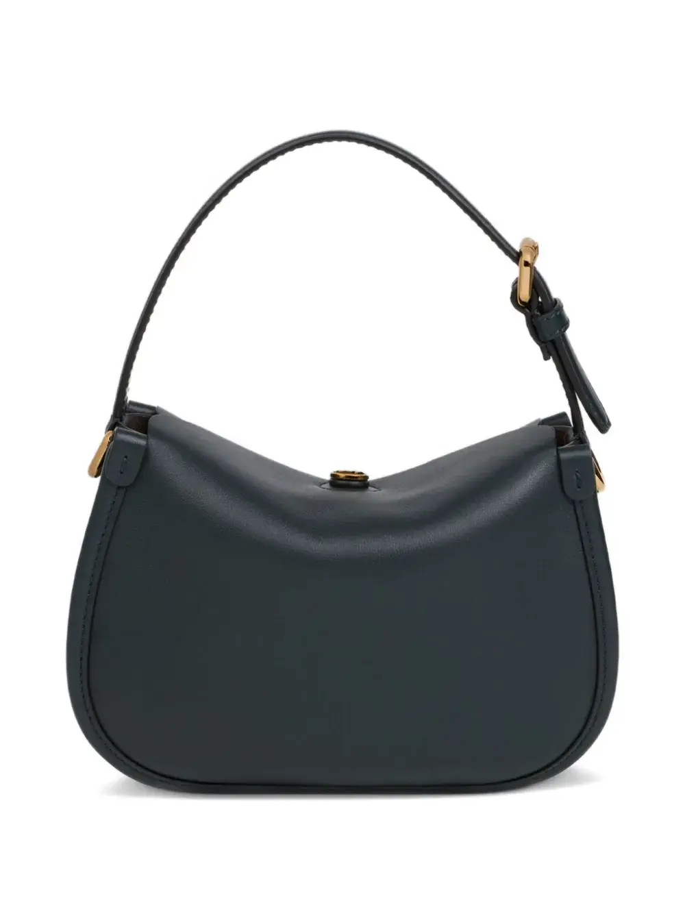 Застежка на пряжку темно-синего цвета, одинарная ручка сверху, съемный плечевой ремень из телячьей кожи