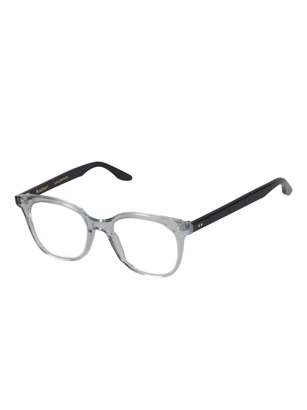 Светло-голубая прозрачная оправа, темно-синие дужки, прямоугольная форма, изящный фирменный стиль, классический дизайн. Очки поставляются с защитным футляром.