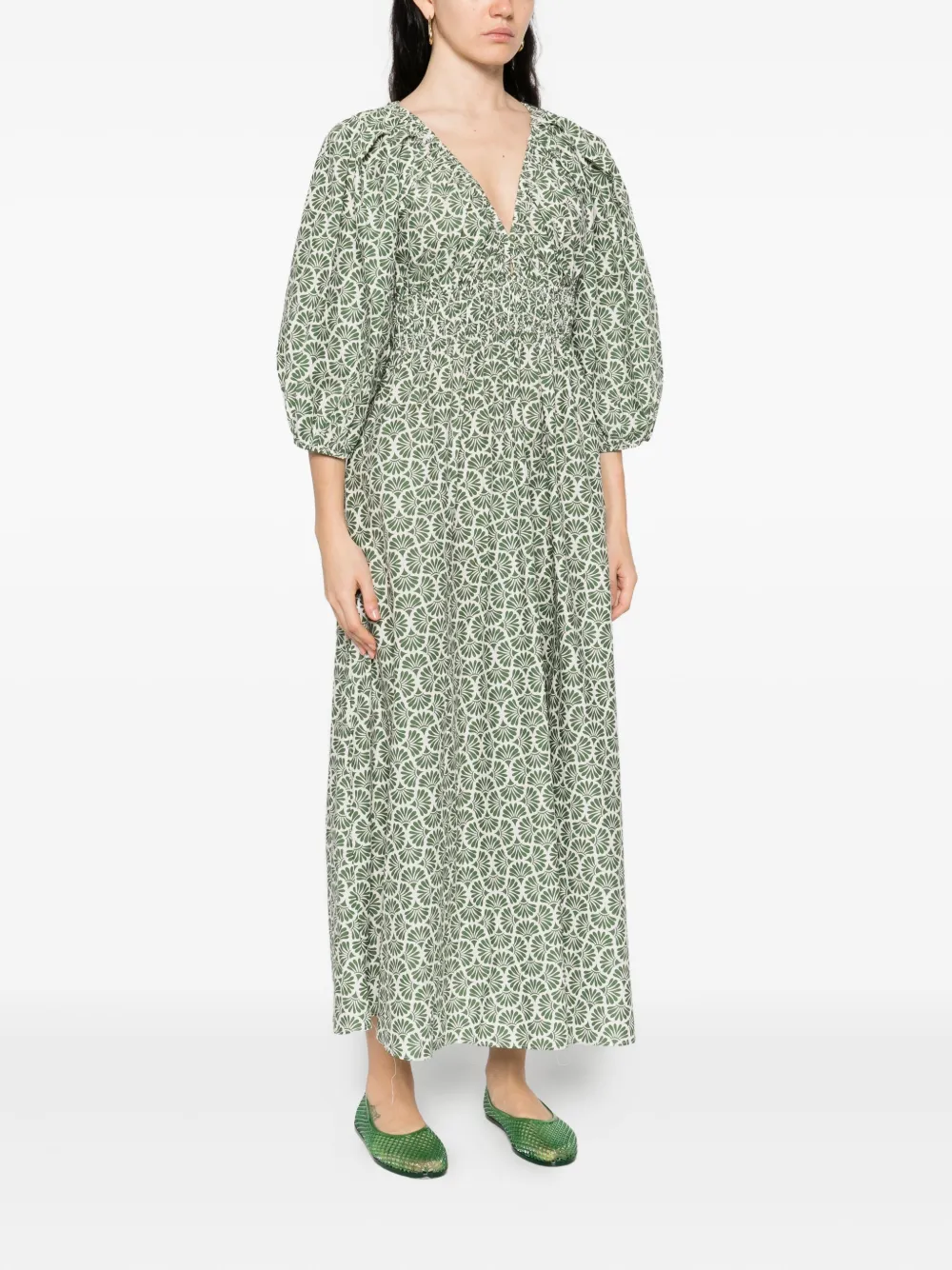 Платье с цветочным принтом и сборками Matteau, зеленый