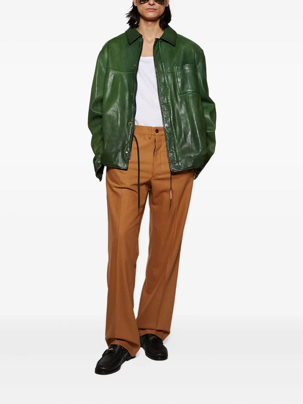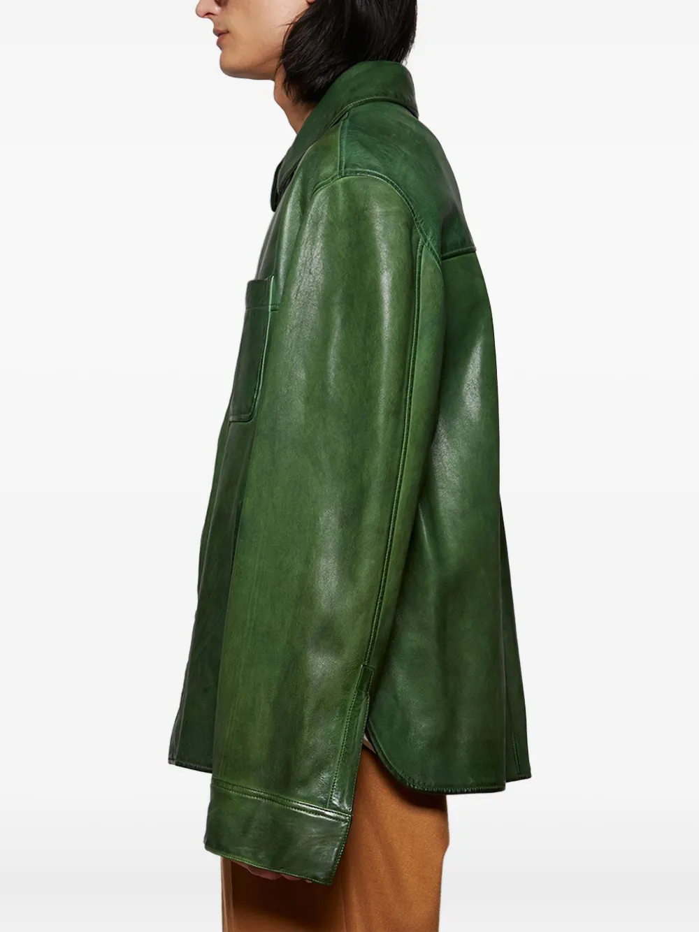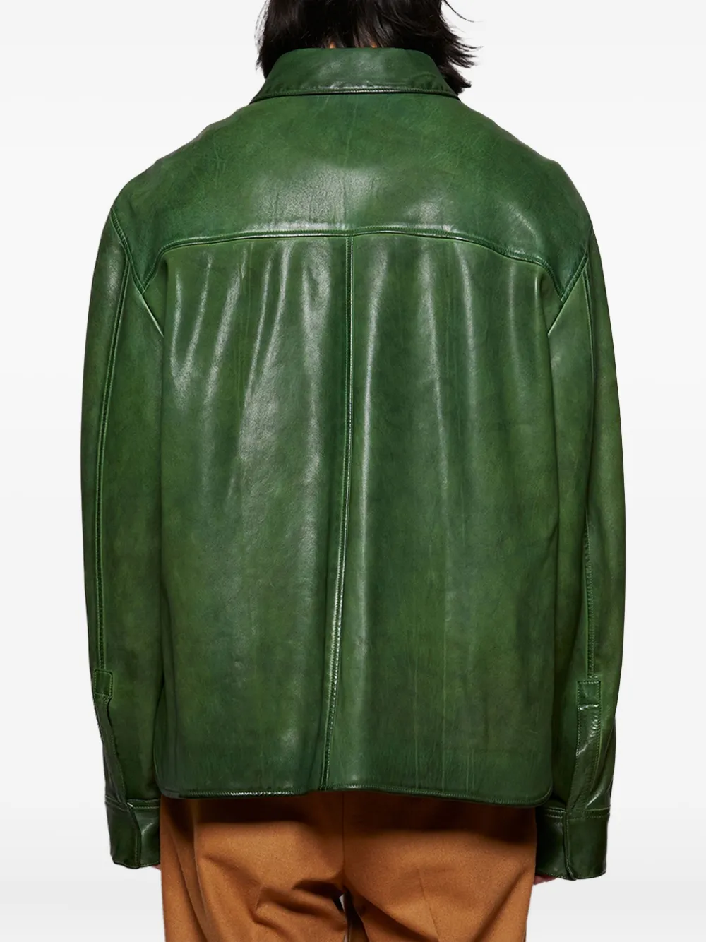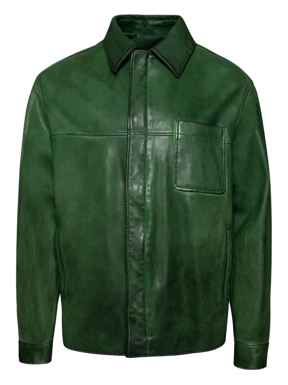 Куртка-рубашка из гладкой кожи LOEWE, зеленый