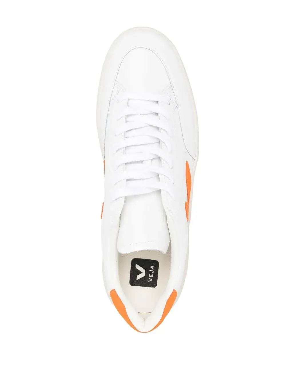 Белый, оранжевый, телячья кожа, нашивка с логотипом сбоку, задник с логотипом, шнуровка спереди, закругленный носок и плоская резиновая подошва.