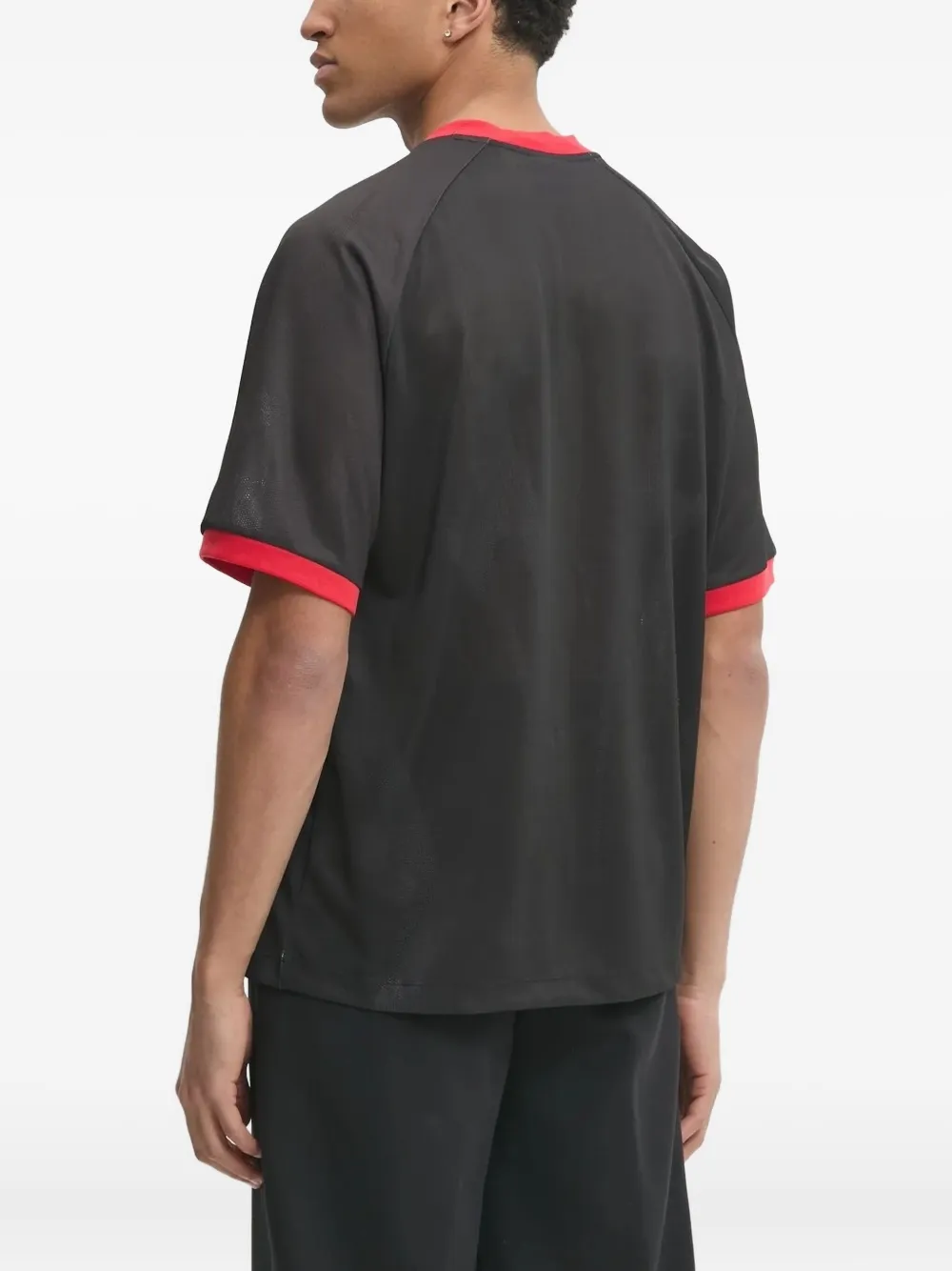 Черная сетчатая панель с принтом паука, красная отделка, короткие рукава реглан