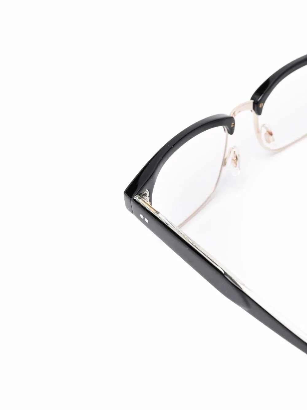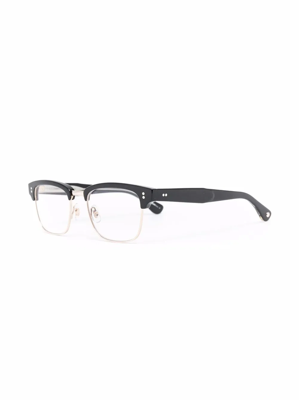 Квадратная оправа, золотистая фурнитура, прозрачные линзы, носоупоры, прямые дужки и дужки с закругленными концами. Цвет: черный. В комплект входит защитный чехол для очков. Обратите внимание, что на FARFETCH продаются оправы с линзами без диоптрий.
