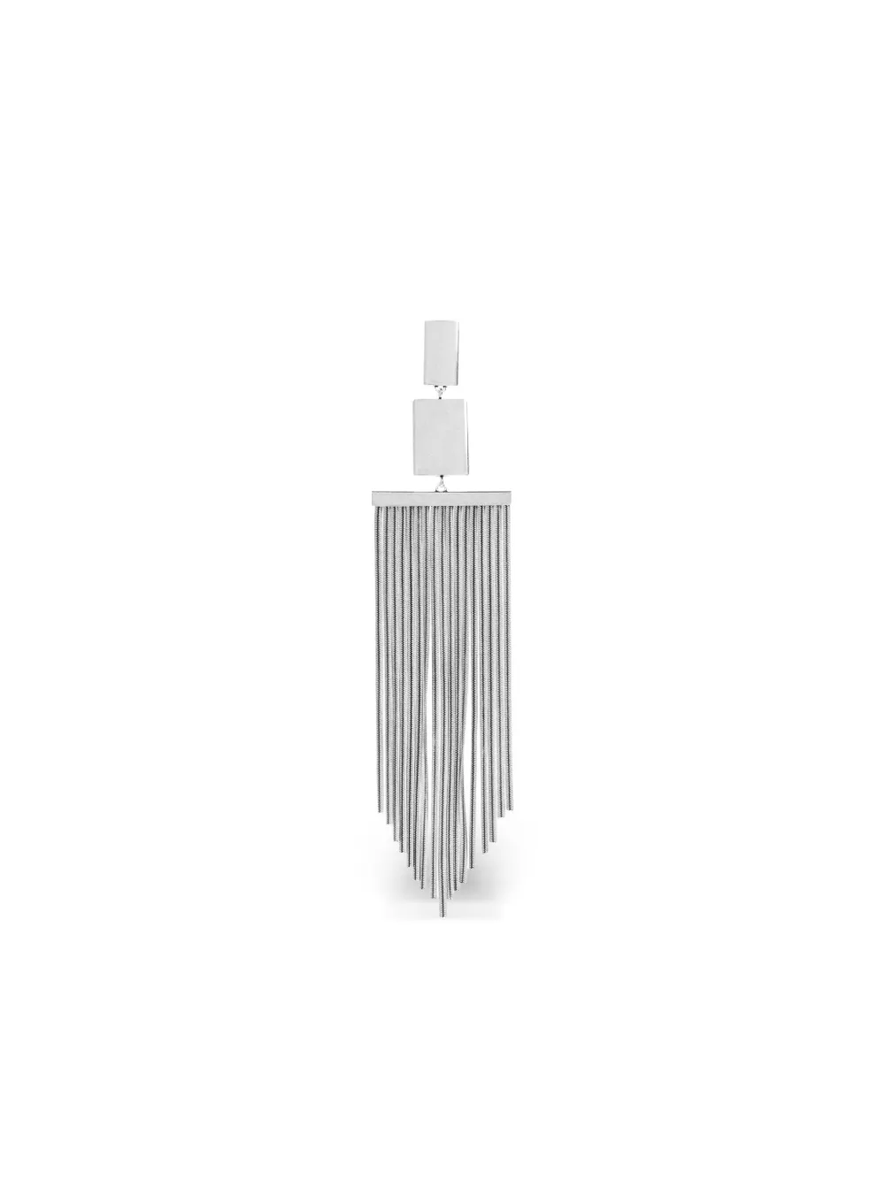 Серьги квадратной формы серебристого тона с бахромой, свисающим дизайном. Эти серьги продаются парой.