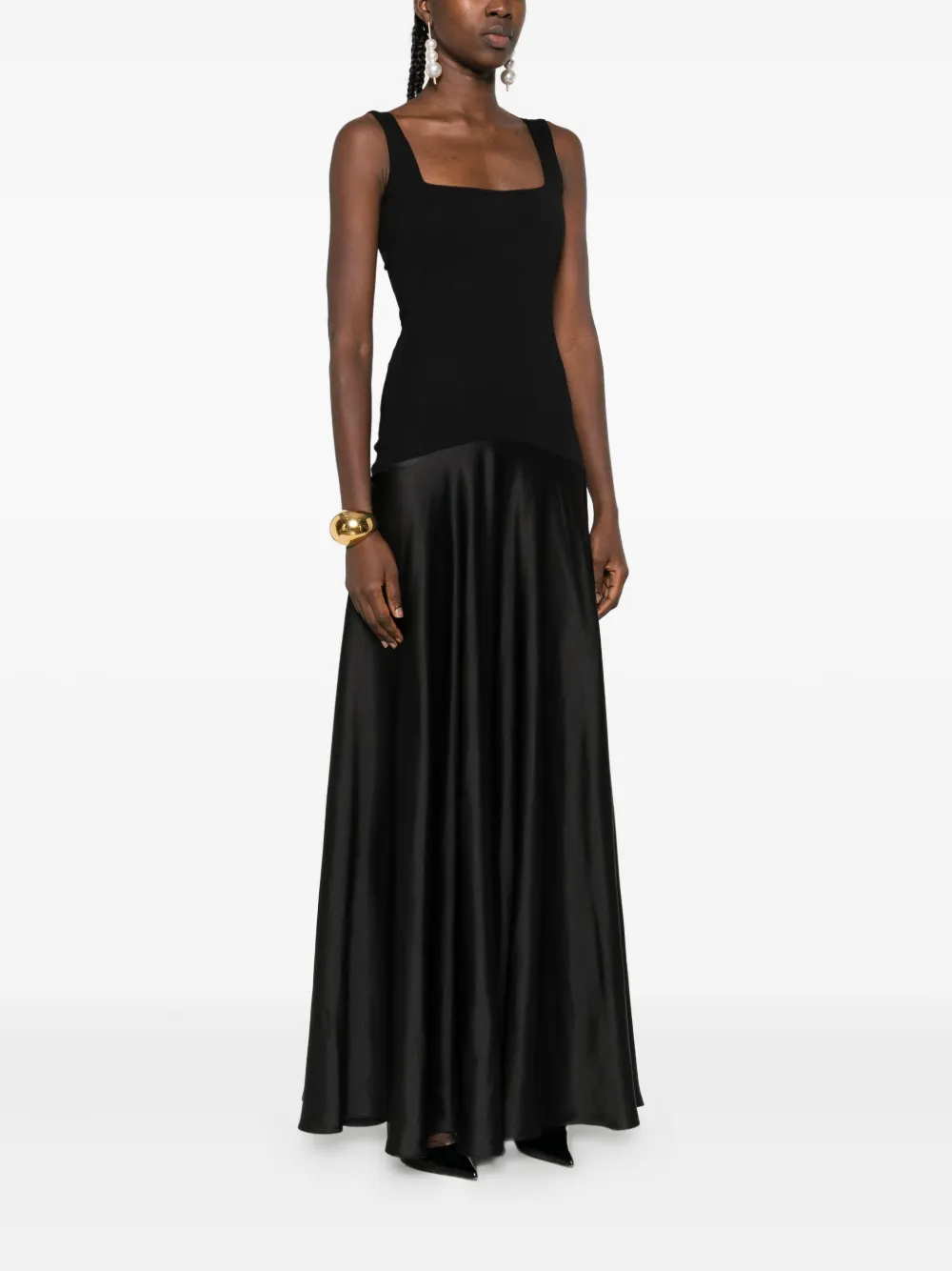 Атласное платье с квадратным вырезом ROSERRY, черный 41 000₽