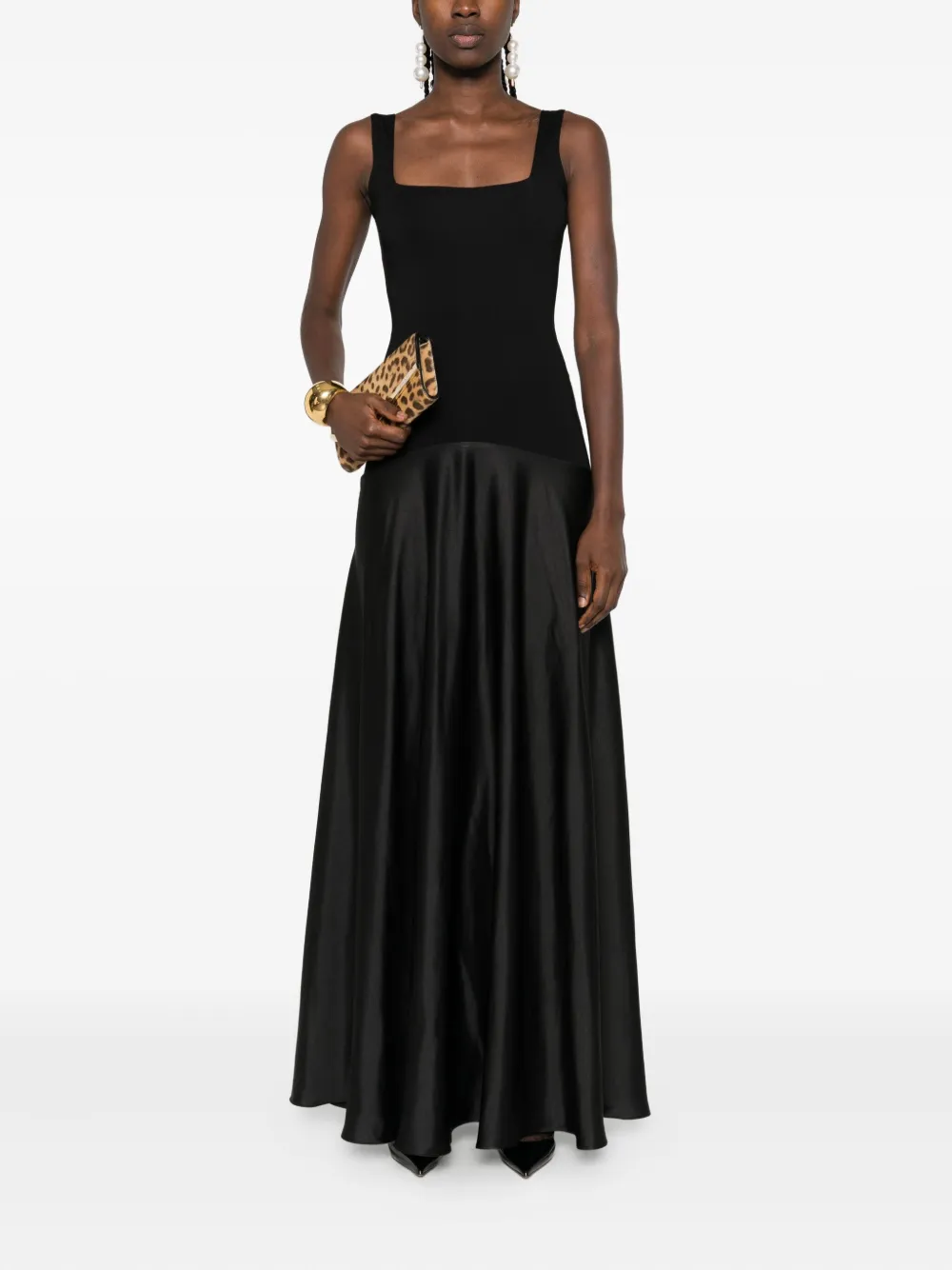 Атласное платье с квадратным вырезом ROSERRY, черный