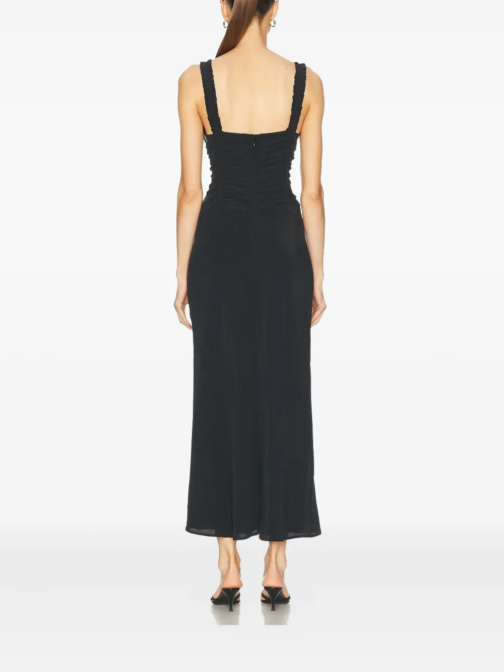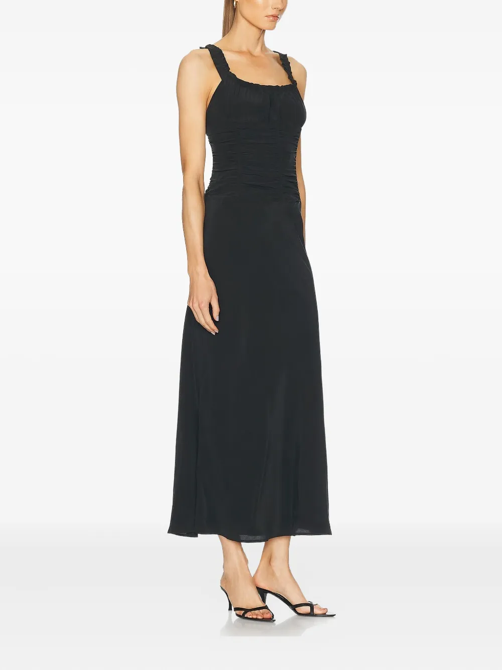 Черный квадратный вырез, присборенный лиф без рукавов, макси-длина, шелковый материал