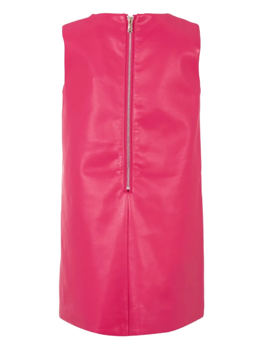 Украшения в виде звезд цвета фуксии, застежка-молния сзади, безрукавки, карманы.