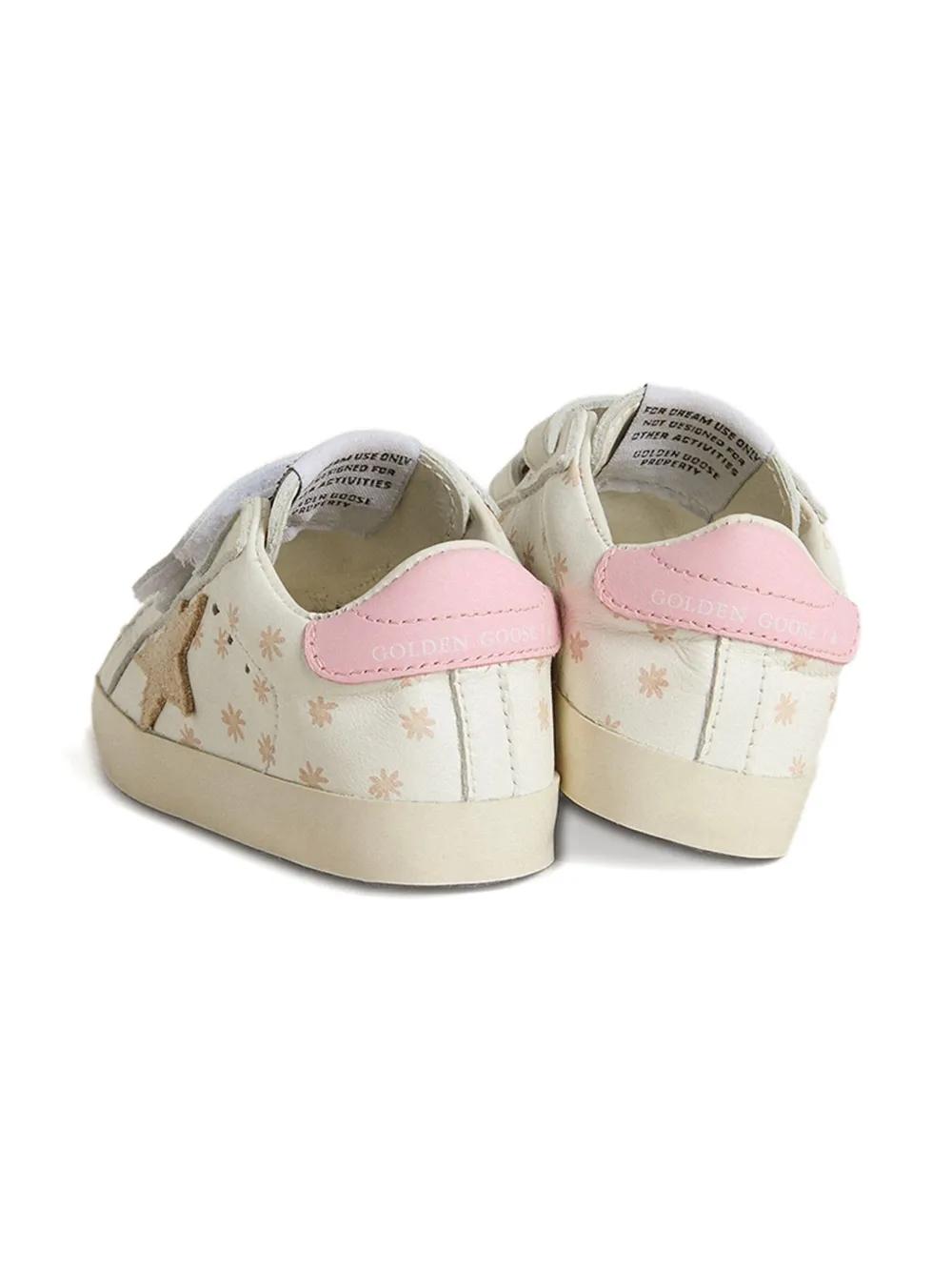 Белый цветочный принт, украшение в виде звезд, ремешки-липучки, кожаная резиновая подошва