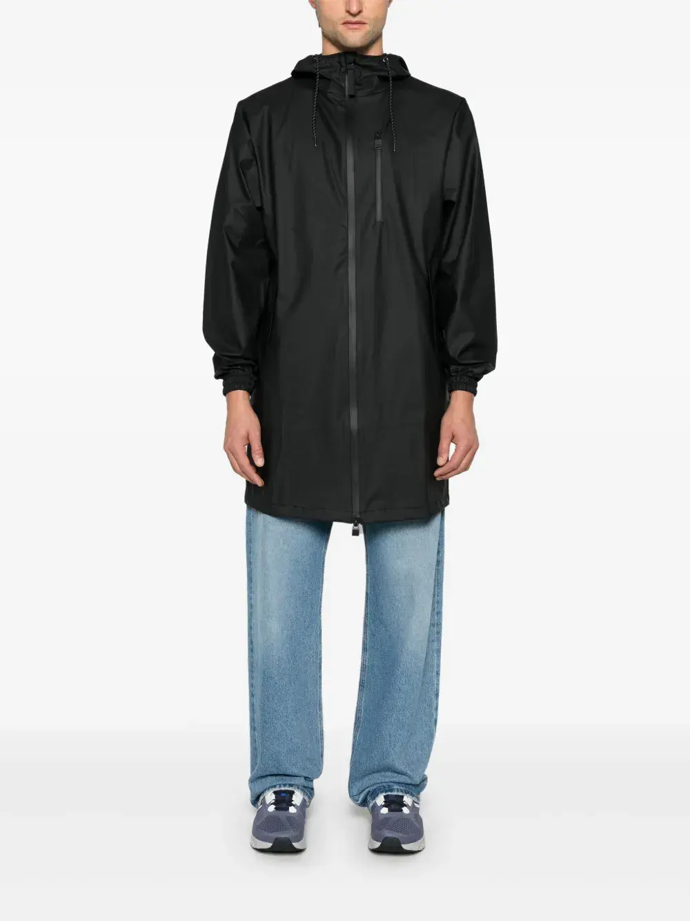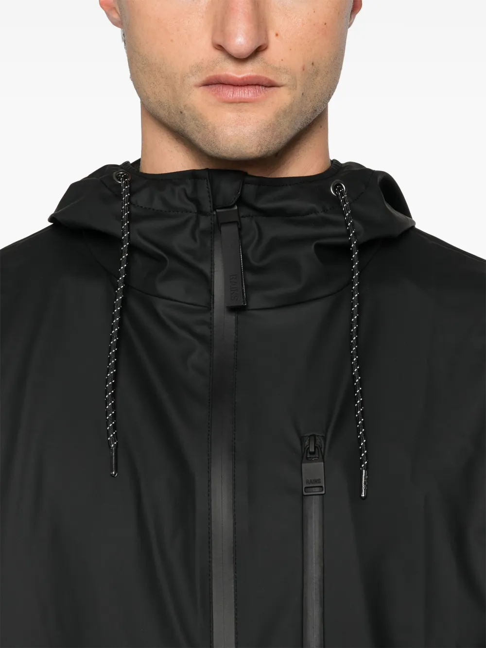 Подробнее о товаре: • черный • водонепроницаемый материал • ветронепроницаемый материал • дышащая ткань • легкая конструкция • двусторонняя молния спереди • объемный капюшон на шнурке • длинные рукава • эластичные манжеты • карман на молнии спереди • два передних кармана с листочкой • модель без подкладки • прямой подол • Это унисекс-модель. Обратите внимание, что для нее используется мужская размерная сетка.