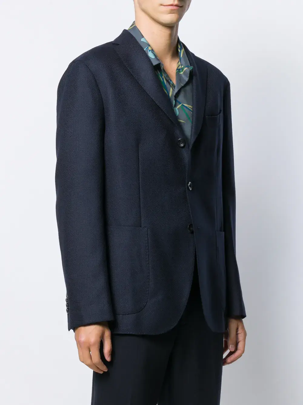 Блейзер прямого кроя от Boglioli. Длинные рукава, прямой крой, передние карманы, цельная подкладка и застежка на пуговицах спереди.