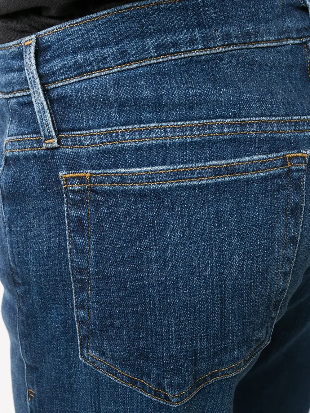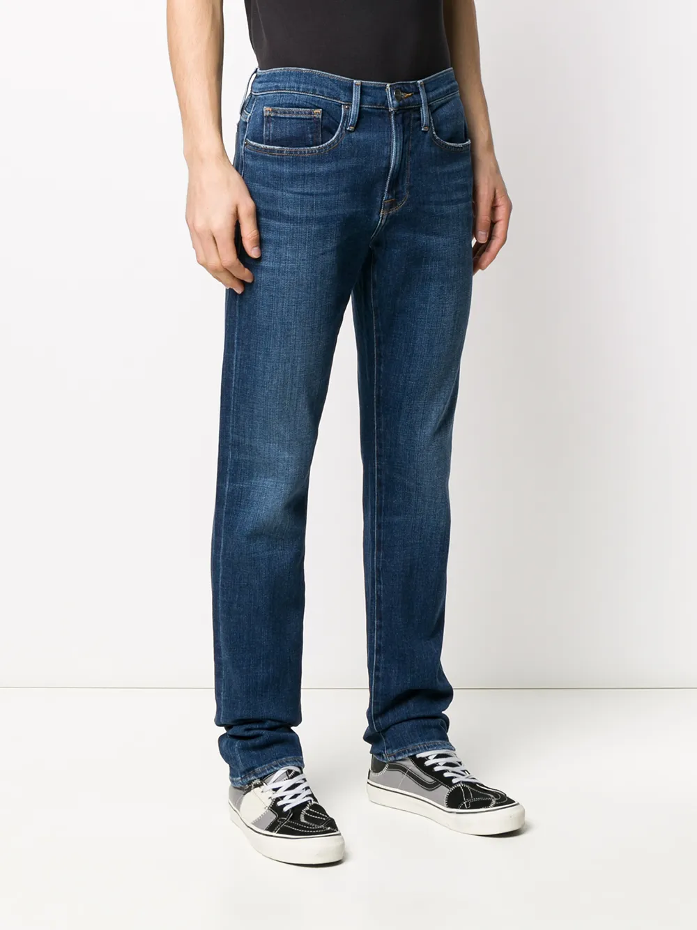 Джинсы прямого кроя от Frame. Петли для ремня, классическая пятикарманная модель, прямые брючины, выцветший эффект и ширинка на молнии с пуговицей. Цвет: синий.